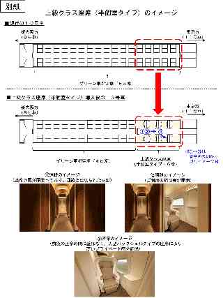 東海旅客鉄道株式会社 東海道新幹線への上級クラス座席(半個室タイプ)の導入について 当社では、生活様式や働き方の変化により多様化するお客様のニーズにお応えすべく、新幹線の新たな座席のあり方の検討を進めてきました。このたび、半個室タイプの座席を東海道新幹線に導入し、個室タイプの座席と合わせてグリーン車よりもさらに上質な設備・サービスを備えた上級クラス座席として発売することを決定しましたのでお知らせします。 1.概要(別紙) ・東海道新幹線N700S車両の一部の10号車に、高いプライベート感と上質性を兼ね備えた座席6席を導入 ・通路と座席間には出入り用の鍵付き扉を設け、大型バックシェルタイプの座席を採用することで、高いプライベート感を確保 ・座席はレッグレスト付きのリクライニングシートとし、半個室タイプ座席専用の Wi-Fi環境や荷物スペースを整備 ・座席を転換することができ、対面でのご利用も可能 2.サービス開始時期(予定) 2027年度中 3.その他 ・設備仕様やサービス内容、座席名称、運転区間、価格等の詳細につきましては、今後順次お知らせします。 (参考) ・個室タイプの座席のサービス開始時期はこれまで「2026年度中」としていましたが、2026年秋のサービス開始を予定しています。 |