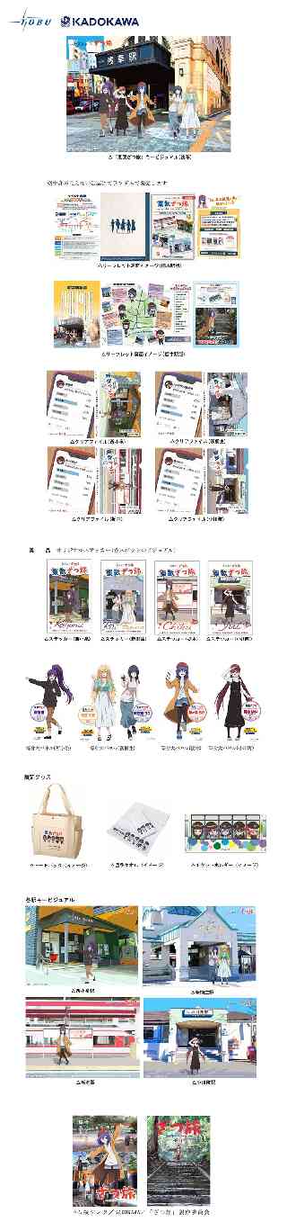 ― テレビアニメ「ざつ旅 -That’s Journey-」×東武鉄道 リアルざつ旅体験イベント ― ランダムで行き先が決まる! 「東武ざつ旅〜新しい景色、まだまだあるかも〜」を開催します! 東武鉄道株式会社 株式会社 KADOKAWA 東武鉄道株式会社(本社:東京都墨田区)と株式会社 KADOKAWA(所在地:東京都千代田区)は、2025年4月7日(月)より AT-X,BS11,TOKTO MX,読売テレビほかで放送を開始するテレビアニメ「ざつ旅-That’s Journey-」とのコラボレーション施策として、ランダムで行き先が決まるリアルざつ旅体験イベントを3月27日 (木)より実施します。 テレビアニメ「ざつ旅 -That’s Journey-」は、女子大生の主人公・鈴ヶ森ちかがSNSでのアンケートをもとに旅先を決める行き当たりばったりな旅を展開し、「ざつ」だからこそ思いがけない出会いをしていく物語です。 本イベントは、「ざつ旅」の主人公と同じく行き当たりばったりな旅を、東武沿線を舞台に疑似体験できるものです。行き先の候補となる4駅(西小泉駅・新桐生駅・栃木駅・小川町駅)のいずれか1駅の観光スポットなどが記載されたリーフレットを購入いただき、ランダムで当たった対象の駅に足を運んでいただくことで「ざつ旅」体験をしていただきます。対象の4駅は、異国情緒あふれる雰囲気、織物の街、小江戸の歴史を感じさせる街並み、ふら呑みにピッタリな酒処と個性あふれる魅力的なスポットです。主人公・ちかになりきった気持ちで、ぜひ東武沿線で新たな景色や思いがけない出会いをお楽しみください。 また、キャラクターたちが東武鉄道の駅係員や乗務員の制服を着た姿がデザインされたオリジナルグッズを発売します。旅にピッタリなグッズセットとなっておりますので、ぜひお買い求めください。 詳細については別紙をご覧ください。 <別 紙> テレビアニメ「ざつ旅-That’s Journey-」×東武鉄道 リアルざつ旅体験イベント について 1 名 称 「東武ざつ旅〜新しい景色、まだまだあるかも〜」 2 実施期間 2025年3月27日 (木)〜2025年6月26日(木) 3 参加方法 (1)駅でオリジナルクリアファイル付リーフレットを買おう! ※中身はランダムで、西小泉・新桐生・栃木・小川町いずれか1駅が入っています。 (2)行き先が決まれば”ざつ旅”がスタート! 電車で目的駅へ行こう! (3)リーフレットのざつ地図を参考にして、街を楽しもう! ※リーフレットには、対象の観光スポットなども掲載しています。 (4)景品引換所でオリジナルステッカーをもらおう! (5)等身大パネルと記念撮影をして旅の思い出を残そう! ※等身大パネルは景品引換所に設置しています。 新桐生のみ、新桐生駅にパネルがございます。 4 発売内容 西小泉・新桐生・栃木・小川町いずれか 1駅をテーマとしたオリジナルクリアファイル付リーフレット ※中身が見えない包装にてランダムで発売します 5 発売価格 500円 (税込) ※交通費はお客様のご負担となります。 6 発売箇所 浅草駅、とうきょうスカイツリー駅、曳舟駅、亀戸駅、北千住駅、西新井駅、竹ノ塚駅、草加駅、新越谷駅、北越谷駅、春日部駅、大宮駅、岩槻駅、七光台駅、野田市駅、流山おおたかの森駅、柏駅、新鎌ケ谷駅、船橋駅、池袋駅、下板橋駅、大山駅、上板橋駅、成増駅、和光市駅、朝霞台駅、志木駅、ふじみ野駅、川越駅 (計29駅) 東武グループ ECサイト「 TOBU MALL」(セット売りのみ) URL:https://tobumall.jp/shop/g/gTR25-20000004/ 7 発 売 数 2,800部 (700部×4駅分 ) TOBU MALL限定で、全4駅分入ったセットを100セット発売します。 8 景 品 オリジナルステッカー (各スポットのビジュアル ) 9 景品引換場所 西小泉:大泉町観光協会事務局 8:30〜17:30 新桐生:桐生市観光情報センター「シルクル桐生」 9:00〜18:00 栃木 :とちぎ山車会館 9:00〜17:00(最終入館は 16:30まで) 小川町:小川町観光案内所・移住サポートセンターむすびめ 9:00〜16:00 10 等身大パネルの設置場所 西小泉:大泉町観光協会事務局 8:30〜17:30 (蓮見暦) 新桐生:新桐生駅始発から終電まで (糀谷冬音・天空橋りり) 栃木 :とちぎ山車会館 9:00〜17:00(最終入館は 16:30まで)(鈴ヶ森ちか ) 小川町:小川町観光案内所・移住サポートセンターむすびめ 9:00〜16:00 (鵜木ゆい ) 11 限定グッズの発売 商 品:オリジナルトートバック・温泉タオル・チケットホルダーの3点セット ※キャラクターたちが東武鉄道の駅係員や乗務員の制服を着た オリジナルのちびキャラグッズがデザインされています。 発 売 数:3,500円 (税込)+送料がかかります。 発売箇所:東武グループのショッピングサイト「 TOBU MALL」にて限定発売 URL:https://tobumall.jp/shop/g/gTR25-20000003/ 以上 <参考1> 「ざつ旅 -That’ s Journey-」について テレビアニメ「ざつ旅 -That’s Journey-」は AT-X、BS11、TOKYO MX、読売テレビほかにて、2025年4月7日(月)より放送開始します。 漫画賞の新人賞を受賞した漫画家志望の女子大生・鈴ヶ森ちかは、ある日、編集部に新作のネームを 3本持ち込んだものの全ボツを食らってしまう。心が折れそうになったとき、唐突に胸の中に溢れてくるものがあった。「どこか、旅にでた