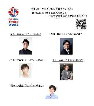 東海旅客鉄道株式会社 大阪・関西万博に関連した当社の今後の取組み 2025年4月13日に「2025年日本国際博覧会」(以下、「大阪・関西万博」)が開幕します。当社としましても、開幕までの間、さまざまな形で万博開催に向けた機運醸成に協力してまいりましたが、万博に関連した今後の当社の取組みをご紹介します。 1.需要に応じた列車ダイヤの設定およびお客様案内の強化 ・東海道新幹線について、首都圏や中京圏方面からのお客様がご利用いただきやすいように、「のぞみ12本ダイヤ」を活用しながら、需要に合わせて十分な列車本数を設定します。さらに、開催期間中の新幹線のご予約・ご利用状況を踏まえ、必要に応じて追加の臨時列車を設定してまいります。 ・開催期間中は新大阪駅に外国人向けの案内係を増配置する等、お客様案内の強化にも取り組みます。 2.大阪・関西万博テーマウィーク「未来のコミュニティとモビリティ」への参加 当社は、各国参加者や協会・協賛企業の関係者等が集まって特定のテーマについて討論する対話型イベント「テーマウィーク」で、以下の対話プログラムを主催します。 (1)タイトル:『リニア中央新幹線がもたらすインパクトの最大化 〜リニアで未来はどう変わるのか?〜』 (2)開催日時:2025年5月21日(水)10:30〜12:00 (3)場所:万博会場内テーマウィークスタジオ(大阪市此花区) (4)登壇者:別紙のとおり (5)主な内容:リニア中央新幹線の開業がもたらす、社会の強靭化、巨大都市圏(東京、名古屋、大阪)形成による経済・社会への効果、環境負荷低減の可能性などについて議論を行う (6)視聴方法:現地での観覧に加え、オンラインで配信 (同時通訳での英語配信を含む) (7)申込方法:大阪・関西万博テーマウィークのホームページから申込(※1) (8)その他:本プログラムの紹介を兼ね、本日から YouTube「リニア中央新幹線チャンネル」で、有識者による座談会動画『東大教授の未来予測 〜リニアで未来はどう変わるのか?〜』を公開(※2) https://www.youtube.com/playlist?list=PLEPh7qLff7UaOWw23IEKLs-piD4LkgfTV ※1 参加申込受付期間は4月21日〜5月13日です。(抽選制) 上記期間中に専用のサイトからお申込みが可能です。 https://theme-weeks.expo2025.or.jp/program/detail/66ed20f78ae08.html ※2 全部で6本の動画を順次公開予定です。 別紙 大阪・関西万博テーマウィーク 『リニア中央新幹線がもたらすインパクトの最大化 〜リニアで未来はどう変わるのか?〜』 ≪登壇者プロフィール≫ 加藤 真平(かとう しんぺい) 株式会社ティアフォー 代表取締役CEO 2008年、慶應義塾大学で博士(工学)の学位を取得。カーネギーメロン大学とカリフォルニア大学の研究員を経て、2012年に名古屋大学の准教授に着任し、 2016年からは東京大学の准教授としてコンピュータサイエンスの分野を牽引してきた。現在は2015年に創業した株式会社ティアフォーの代表取締役 CEO、および 2018年に創業した一般社団法人 The Autoware Foundationのフェロー、東京大学の特任准教授を務めている。 森川 博之(もりかわ ひろゆき) 東京大学大学院工学系研究科教授 1987年東京大学工学部卒業。2006年東京大学大学院教授。モノのインターネット/ビッグデータ/DX、無線通信システム、情報社会デザインなどの研究に従事。2022年から情報通信ネットワーク産業協会(CIAJ)会長。電子情報通信学会会長、総務省情報通信審議会部会長、OECDデジタル経済政策委員会副議長などを歴任。 石黒 不二代(いしぐろ ふじよ) 世界経済フォーラム日本代表 米国のネットイヤーグループCEOとして日本市場への上場に導くなど、20年以上にわたるクロスボーダーおよびスタートアップのマネジメント経験を持つ。経済産業省や内閣府など数々の公職を歴任。名古屋大学経済学部卒業、スタンフォード大学経営学修士(MBA)取得。 2024年9月より現職。 菊川 人吾(きくかわ じんご) 経済産業省 イノベーション・環境局長 京都大学卒業後、 1994年通産省入省。通商・環境・経済安全保障政策などに従事。在ジュネーブ代表部参事官 (2013年 WTO・TBT委員会議長)、中小企業庁 (金融課長、財務課長)、経済再生担当大臣秘書官、情報産業課長、内閣参事官、大臣官房審議官などを経て現職。米コロンビア大学修士、青山学院大客員教授、米国公認会計士。 ※上記のほか、東海旅客鉄道株式会社代表取締役社長の丹羽俊介が登壇 ≪モデレータープロフィール≫ 瀧口 友里奈(たきぐち ゆりな) 経済キャスター 東京大学卒。セントフォース所属の経済キャスターとして活躍し、SBI新生銀行などの社外取締役に就くほか、自ら立ち上げた株式会社グローブエイトの代表、そして、アカデミアと社会をつなぐ動画メディア「アカデミアクロス」のプロデューサーを務めている。東京大学工学部アドバイザリーボード・メンバー。24年世界経済フォーラムヤンググローバルリーダーズに日本人のキャスターとして史上初選出。 |