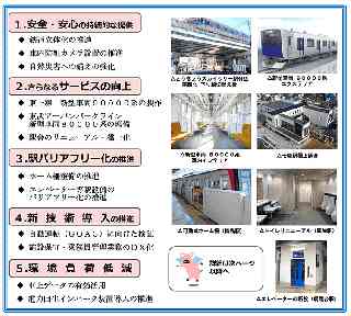 ○ポイント 自動運転や、 VR技術を活用した DX化を積極的に進めます。 ◆自動運転(GOA3)に向けた検証 大師線において自動運転(GOA3)実現に向けた検証を進めています。2028年度以降の検証運転実施に向けて、2025年度は、前方障害物検知システムの仮設搭載検証試験を行うとともに、自動運転対応新造車両および自動運転システムの設計検討業務を実施します。自動運転に対応した新造車両については、2026〜2027年度に4編成を導入します。 ◆施設保守業務のDX化の推進 【施設状態監視システム】 列車に搭載したモニタリング装置により線路や電車線の状態を検測・監視する「施設状態監視システム」の導入を推進します。これにより、施設の状態をより精緻に把握・管理することで、安全性の向上を図ります。2025年度は、検測・モニタリング装置の製作を行います。 【施設データ管理システム】 線路や電気施設の保守点検業務にタブレット端末を導入、検査および施設データを電子化し、検査計画や実績、補修や予備品を一元管理する「施設データ管理システム」の導入を推進します。2025年度は、システムの構築工事を実施します。 ◆磁気乗車券からQR乗車券への置き換え 駅務機器のメンテナンス性向上や環境負荷低減などを目的として、磁気乗車券からQR乗車券への置き換えを2026年度以降に計画しています。2025年度は、QR乗車券導入に向けたシステム構築工事を実施します。 ◆乗務員管理業務のDX化の推進 乗務員の体調確認、乗務前後の点呼、乗務員への教育指導などの乗務員管理業務にタブレット端末を導入し実施状況を一元管理する「点呼・教育システム」の導入を推進します。2025年度は、本運用を開始するとともに、乗務員管理業務のさらなる効率化を目指し、業務の一部自動化に向けてシステム構築工事を実施します。 ◆ VR技術を活用した乗務員訓練用シミュレーターの導入 さらなる安定・安全輸送の実現を目指し、VR技術を活用し、実際の現場に即した臨場感のある訓練が可能な乗務員訓練用シミュレーターの導入を推進します。2025年度は、システム構築工事を実施し、運用を開始します。 ◆ 輸送障害時における社内情報共有アプリの導入 お客様によりきめ細やかな運行情報を提供するために、輸送障害発生時、駅係員・乗務員等へ正確かつ迅速に情報伝達を行う社内向け情報共有アプリの導入を推進します。2025年度は、システム構築工事を実施し、運用を開始します。 5.環境負荷低減 ○ポイント 車両、地上設備の両面において、環境にやさしい取り組みを進めています。 ◆ 車上データの有効活用 走行中の車両の乗車率・車内温度・機器状態・走行パターンなどの車上データを把握し活用するシステム「Remote」を2021年度から導入しています。これにより、さらなる安定運行の確保や輸送サービスの向上、省エネ運転の推進を図ります。2025年度は、新型車両90000系(東上線で運行予定)、新型車両80000系(東武アーバンパークラインで運行)のほか、60000系車両(東武アーバンパークラインで運行)、50000系車両(東武スカイツリーライン、東上線で運行)への導入を拡大します。 ◆ 電力回生インバータ装置導入の推進 電車がブレーキを使用した際に発生する回生電力を有効活用するために「電力回生インバータ装置」の導入を推進しています。本装置は、余剰回生電力を直流電力から交流電力に変換し、駅等の電源として用いることで電力使用量の削減を図るものです。2024年度までに、4か所の変電所で稼働しています。 2025年度は、曳舟変電所、杉戸変電所の運用開始に向け工事を進めます。 ◆ 駅施設等照明器具のLED化の推進 駅施設や車庫等の照明器具をLED照明に更新しています。2025年度は、宇都宮線東武宇都宮駅、東武アーバンパークライン柏駅、東上線川越市駅等の30駅および南栗橋工場等においてLED化を進めます。 ◆ 変電所における環境負荷の低い機器への更新 変電所の変圧器に使用している油を植物油に置き換え、環境負荷の低い機器に更新しています。2024年度までに、18か所の変電所で稼働しています。2025年度は、小菅変電所、藪塚変電所、下小代変電所の運用開始に向け工事を進めます。 以 上 |