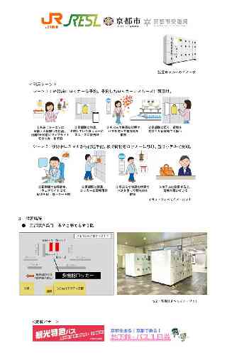 東海旅客鉄道株式会社(以下「JR東海」という)及び株式会社JR東日本スマートロジスティクスは、公民連携プラットフォーム「KYOTO CITY OPEN LABO」を活用し、手ぶら観光の推進に向けた取組の一環として、観光客の利便性・快適性の向上や市バス等の公共交通機関の混雑緩和を目的に、京都駅で「初」となる多機能ロッカーを設置します。