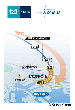 東京地下鉄株式会社(本社:東京都台東区、以下「東京メトロ」)と東武鉄道株式会社(本社:東京都墨田区、以下「東武鉄道」)は、有楽町線延伸区間(豊洲・住吉間)が、同区間の開業(2030年代半ば)に合わせて、半蔵門線(住吉・押上間)及び東武スカイツリーライン※1・伊勢崎線・日光線と相互直通運転することについて基本合意いたしました。