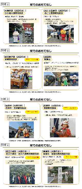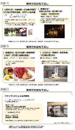 JR西日本グループ Release もっとつながる。未来が動き出す 2025年 5月13日 西日本旅客鉄道株式会社 観光列車「はなあかり」2025年夏 大阪〜敦賀間運行!! 〜駅や車内でのおもてなし・特別な旅行商品〜 観光列車「はなあかり」は、2025年夏季は大阪から琵琶湖沿線を経て敦賀まで運行します。このたび、一部の日程で実施する駅および車内でのおもてなし、ならびに車内で展示する調度品の詳細が決まりましたのでお知らせします。 また「はなあかり」と宿泊などがセットになった特別な旅行商品も販売します。 滋賀・北陸エリアへのご旅行や大阪・関西万博に合わせたプラスワントリップでのおでかけに、ぜひご利用ください。 1.駅や車内でのおもてなし (1)食のサービス 別紙1 地元ならではの食材を使用した食のサービスを、事前予約限定で販売します。 (2)駅でのおもてなし 別紙2 一部の日程・停車駅で、地産品の販売・地元のご当地キャラクターや地元関係者によるお出迎え・ご案内等を実施します。 (3)「はなあかり」車内でのおもてなし 別紙3 一部の日程・区間で地元の方々による地産品の紹介や販売を行います。 また車内にアテンダントが3名乗車し、沿線ならではのお土産品や飲料、「はなあかり」グッズを販売します。 ※今後おもてなし内容について追加等の変更が発生した場合は、決定次第、観光列車「はなあかり」特設サイト上でお知らせします。 2.車内の調度品 別紙4 運行期間中、1号車(スーペリアグリーン車)の飾り棚などに滋賀県ならではの工芸品・アート作品を展示します。 3.運転計画 別紙5 (1)運転区間 大阪〜敦賀(行先により経路を変えて運転) 敦賀行:湖西線経由 大阪行:北陸線・琵琶湖線経由 (2)運転期間 2025年7月5日(土)〜9月28日(日)の間の土日【各日1往復運行】 全21日・42本 ※8月9日(土)、10日(日)、16日(土)、17日(日)、30日(土)を除きます。 4.発売方法 ・全国の駅のみどりの窓口および主な旅行会社窓口 ・JR西日本インターネット予約「e5489」 ※2025年6月5日(木)10:00から発売開始します。 ※グリーン車指定席は、「e5489」の事前申し込みサービスをご利用いただけます。 5.特別な旅行商品 別紙6 「はなあかり」への乗車と車内での食事、ホテルや旅館の宿泊などがセットになった特別な旅行商品を「tabiwaトラベル」で販売します。 ※2025年5月22日(木)13:00から販売開始します。 観光列車「はなあかり」に関する情報は特設サイトでもご覧いただけます。 https://www.jr-odekake.net/railroad/hanaakari/ |