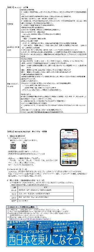 JR西日本グループ Release もっとつながる。未来が動き出す 2025年 5月26日 西日本旅客鉄道株式会社 北陸新幹線開業10周年・1周年特別企画!北陸新幹線利用で WESTERポイントがもらえるキャンペーンを実施します 2025年3月1日〜9月30日の期間に開催している「北陸新幹線 長野〜金沢開業10周年・金沢〜敦賀開業1周年キャンペーン」にあわせ、北陸新幹線をご利用いただいた方にWESTERポイントをプレゼントするキャンペーンを行います。 北陸新幹線のチケットレス商品ご利用、JR西日本の観光ナビ「tabiwa by WESTER」や駅レンタカーのご利用でポイント還元率がさらにアップします。 加えて同時期に(公社)石川県観光連盟が実施する「新幹線に乗って!泊まって!いしかわ特産品プレゼントキャンペーン」にあわせて石川県内にご旅行の方はさらにおトクな特典のチャンスも! 是非キャンペーンを利用して北陸へのご旅行をお楽しみください。 1.対象ご利用期間 2025年6月1日(日)〜7月31日(木) 2.対象商品・区間 (1)北陸新幹線(詳細は別紙1) 対象商品:JR西日本ネット予約「e5489」の各種商品 対象区間:以下のいずれも満たす場合 ・サンダーバードまたはしらさぎと、北陸新幹線を乗り継いでご利用いただいたお客様 ・「大阪〜金沢」、「京都〜富山」、「米原〜福井」など、発駅または着駅のどちらかが、「越前たけふ〜上越妙高」となる区間 (2)チケットレス商品 「北陸・関西チケットレス」「北陸・関西チケットレス(早特7)」が対象です。 ※チケットレスではなく発券して乗車された場合は対象外です。 (3)JR西日本の観光ナビ「tabiwa by WESTER」(以下tabiwa) tabiwaの北陸エリアの商品(詳細は別紙2) ※クーポンは除きます (4)駅レンタカー(詳細は別紙2) JR西日本レンタカー&リースが運営する北陸エリアの駅レンタカー営業所のご利用 3.ポイント還元の内容 (1)もれなくあたる e5489の各種商品:5%相当(J-WESTカード会員は10%相当)を、条件達成した方にもれなく還元します。 さらに以下の条件を達成するとポイント還元率がアップします。 特典1 :対象区間のうち期間中1度でもチケットレス商品利用で還元率5%アップ 特典2 :期間中1度でもtabiwa商品(北陸エリア)利用で還元率5%アップ 特典3 :期間中1度でも駅レンタカー(北陸エリア)利用で還元率5%アップ ※特典のみの達成者は対象外です。 ※e5489の各種商品に対するポイント還元はWESTERポイント(基本)、特典1〜3に対するポイント還元はWESTERポイント(期間・用途限定)です。 (2)抽選で当たる 対象商品・区間のうち片方の発駅または着駅が石川県内の新幹線駅(加賀温泉駅、小松駅、金沢駅)を1度でも利用した場合は抽選で100名様に10,000ポイントを還元します。 ※「(1)もれなくあたる」と「(2)抽選で当たる」はダブル当選も可能です。 ※「(2)抽選で当たる」のポイント還元はWESTERポイント(期間・用途限定)です。 【「もれなくあたる」ポイント還元例】 例1:J-WESTカード会員様(10%)+チケットレス商品(+5%)+tabiwa商品(+5%)+駅レンタカー(+5%)利用 ┌───────────────────┬─────┬────┐ │ご利用 │ご利用金額│ 還元率 │ ├───────────────────┼─────┼────┤ │対象区間をチケットレス商品でご利用 │ 10,000円│ 25%相当│ ├───────────────────┼─────┼────┤ │tabiwa │ 5,000円│ 25%相当│ ├───────────────────┼─────┼────┤ │駅レンタカー │ 8,000円│ 25%相当│ └───────────────────┴─────┴────┘ 例2:WESTER会員様(5%)+チケットレス商品(+5%)+駅レンタカー(+5%)利用 ┌───────────────────┬─────┬────┐ │ご利用 │ご利用金額│ 還元率 │ ├───────────────────┼─────┼────┤ │対象区間をチケットレス商品でご利用 │ 10,000円│ 15%相当│ ├───────────────────┼─────┼────┤ │対象区間をチケットレス商品以外でご利用│ 20,000円│ 15%相当│ ├───────────────────┼─────┼────┤ │駅レンタカー │ 8,000円│ 15%相当│ └───────────────────┴─────┴────┘ ※特典1〜3は順不同です。 ※ご利用金額はイメージです。実際の金額とは異なります。 <「WESTERポイント(期間・用途限定)」とは> ・駅ビル・ショッピングセンターなど、多くの店舗でご利用いただけます。 ・ECサイトでは、「WESTERモール」でのお買い物や、JR西日本エリアの特産物などが購入できる「DISCOVER WEST mall」でもご利用いただけます。 ・JR西日本ネット予約「e5489」、ICOCAチャージにはご利用いただけません。 ・ポイントの有効期限は、キャンペーンにより異なります。 ※WESTERポイント(期間・用途限定)の詳細は以下ページをご確認ください。 https://wester.jr-odekake.net/point/ おトクにゲットしたポイントは、有効期間内に使い切りましょう! 4.その
