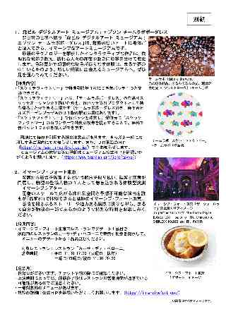 「森ビル デジタルアート ミュージアム:エプソン チームラボボーダレス」及び「イマーシブ・フォート東京」の情報は、別紙のとおりです。