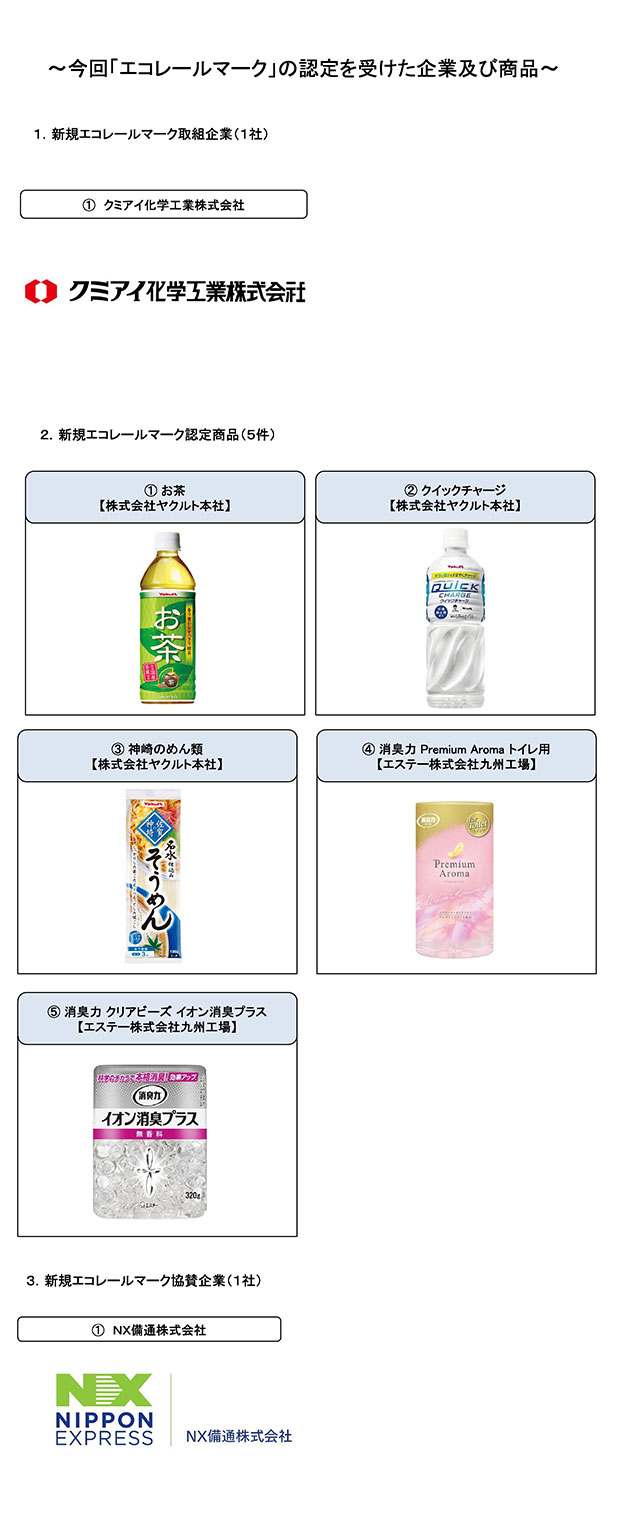 キャプション: 今回「エコレールマーク」の認定を受けた企業及び商品
