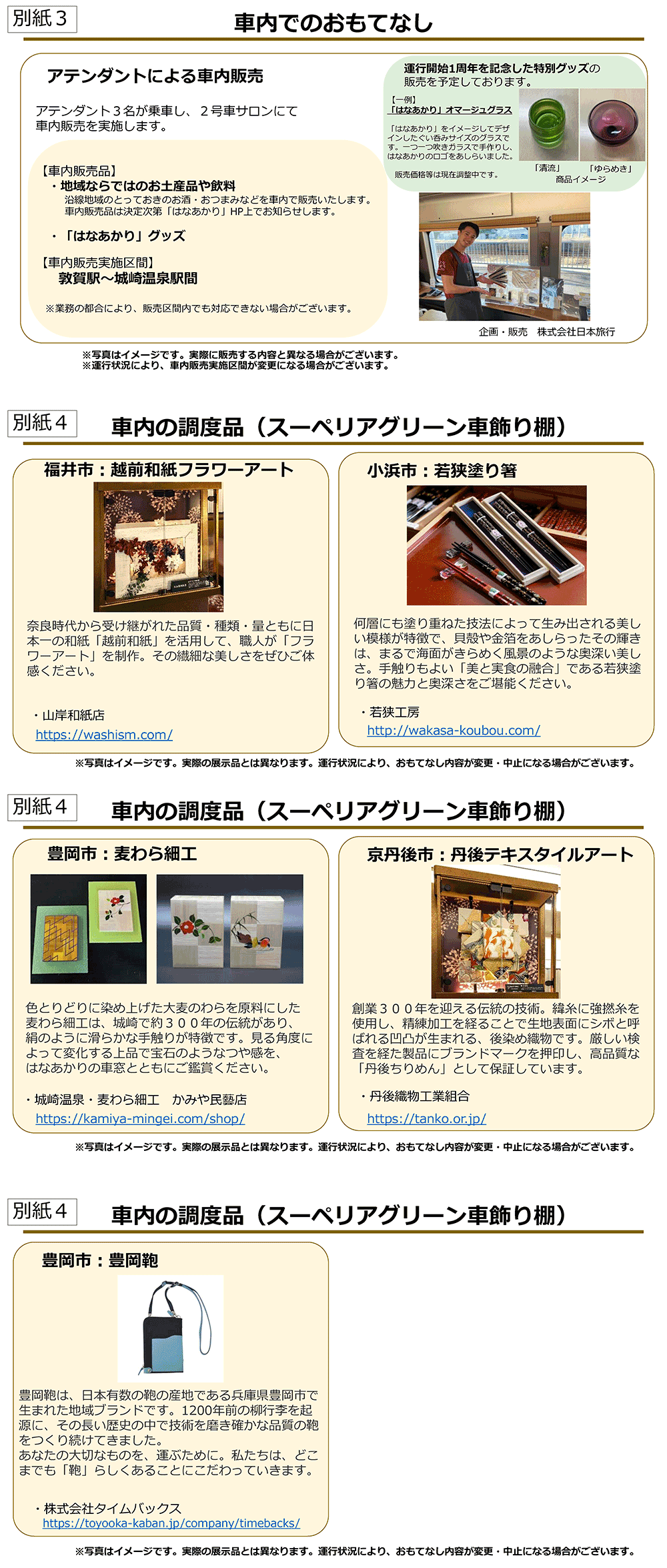 キャプション: 別紙3 車内でのおもてなし/別紙4 車内の調度品(スーペリアグリーン車)