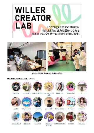 WILLER MARKETING株式会社 〜プロから学べる講座や体験を通じて発信力のあるSNSクリエイターを創出〜 『WILLER CREATOR LAB』始動! 全国から集まったWILLER第4期アンバサダー21名が活動開始 WILLER MARKETING株式会社(本社:大阪府大阪市、代表取締役社長:辻本 宗男、以下「WILLER」)は、Instagram等のSNS発信を通じて高速バスやWILLERの魅力を発信するプロジェクト『WILLER CREATOR LAB』(URL:https://travel.willer.co.jp/feature/ambassador/)を、本日2025年6月5日(木)より始動します。今回、『WILLER CREATOR LAB』で活動するWILLER第4期アンバサダーが決定し、全国から集まった総勢21名が2025年6月〜2025年11月末までの半年間活動します。 2024年から始まったアンバサダー制度は、これまで40名以上のアンバサダーが参加しました。第1期〜第3期のアンバサダーには、座談会や高速バスの営業所見学ツアーなどに参加いただき、高速バス「WILLER EXPRESS」のシート機能や安心・安全に対する取り組みを知っていただくことで、高速バスサービスの理解を深めていただきました。その結果、アンバサダーによる投稿のInstagramでの推定インプレッション数は約40万件となり、SNS起点での認知拡大に貢献いただいています。 このたび、第4期アンバサダーが全国から集まった21名に決定し、今後SNSを通じて高速バスでの移動や旅、WILLERの魅力などを自らの視点で発信いただきます。今回は、発信力の高いSNSクリエイターの育成に向けた、InstagramのプロによるSNS講座の開催や同じ志を持つ仲間との交流の機会も用意しており、SNSクリエイターのみなさんを応援します。 今後もWILLERは、アンバサダーのSNSスキル向上やコミュニティ形成などクリエイターに寄り添った取り組みを拡充し、SNS発信を強化することでWILLERの認知拡大、高速バスの利用促進を図ってまいります。 ■コンセプト 「移動の自由が、発信の可能性を広げる。」 SNSを通じて情報を発信する人たちにとって、行動範囲の広がりは インスピレーションの源。 このプロジェクトでは、バス移動によって活動をサポートすることで、 発信者がより多くの場所へ足を運び、 新しい体験や景色を発信できる環境を提供します。 ただ移動するだけではなく、その移動が新しいストーリーを生み出し、 SNSでの発信をより豊かにする。 旅するように発信し、発信することで新たな旅が生まれる―― そんな好循環を生み出すことを目指します。 ■アンバサダーの活動内容と特典 【活動内容】 ・Instagramで画像5枚以上のフィード投稿またはリール投稿を少なくとも月1回投稿し、高速バスのシートやサービスなどWILLERの魅力を発信いただきます。 ・座談会やSNS講座などその他の企画にも積極的に参加し、クリエイターとしてのスキルアップを目指していただきます。 【特典】 @ 総額最大3万円分のバスクーポンを贈呈 実際にバスを利用いただき、魅力を発信いただきます。また、レストランバスの無料ご招待企画を実施します。 A InstagramのプロによるSNS講習 1万人以上の生徒を抱えるInstagramスクールを運営する株式会社SAKIYOMIから講師をお招きし、運用におけるノウハウが得られる講座を2回開催します。 B 発信者として同じ志を持つ同士が集まるコミュニティ SNSを通して世の中に何かを伝えたいという熱い思いを持つメンバーとの繋がりができます。 ■過去アンバサダーによる投稿例 https://www.instagram.com/reel/DCMNbScyiFX/ https://www.instagram.com/p/DIGxLtkyfRf/ https://www.instagram.com/p/C4W5RbPPYX4/ https://www.instagram.com/p/DCaXXwVTm3W/ https://www.instagram.com/p/C-oy_I3PQy2/?img_index=6 https://www.instagram.com/p/C5f9e0NPoxN/?img_index=2 https://www.instagram.com/p/CzD4x6rS_tj/ ■協業などのお問合せ先 https://em.willer.co.jp/n/form/cxcb/5xSCrheMFG7TLuSp-7ykr |