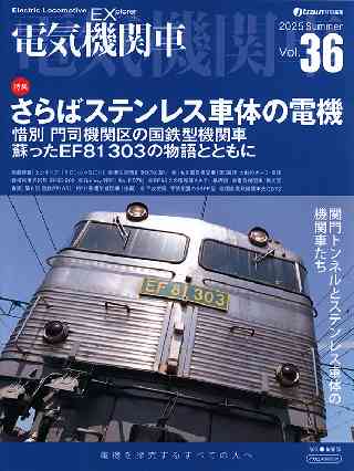 電気機関車 2025 Summer vol.36 電機を探求するすべての人へ jtrain特別編集 特集:さらばステンレス車体の電機 発行 2025年8月25日 定価 2,750円[本体2,500円]I 図書符号 ISBN978-4-8022-1632-6 C9465 \2500E 雑誌61845−09(H) 2026年7月 発行人 山手章弘 編集主幹 新井 正 編集長 山本和彦 副編集長 市原 純 スタッフ 木本晃彦、和田 稔 デザイン 小嶋 諭、大坪よしみ、大久保毅、テックプランニング 法人営業 林 保光 出版営業部 平出 圭、国井耕太郎、右田俊貴 発行所 イカロス出版株式会社 https://www.ikaros.jp/ 編集部 Mail: j-train@ikaros.co.jp 印刷所 日経印刷株式会社 Contents 004 〜カメラと旅する四季の鉄道(26)〜 嗚呼堂々の、ショーティー登場 神谷武志 006 最終章 1983〜2025年 EF65 1124最後の「サ囗ンカーなにわ」牽引 長井崇志 008 最終章 1999〜2025年 「カシオペア」本線から撤退 012 特集 さらばステンレス車体の電機 関門トンネルの塩害対策で長きにわたりつづいたステンレス車体の電気機関車。それもEF81 303の使用停止でその歴史にピリオドが打たれました。特集ではステンレス車体のEF10、EF30、EF81 300番代の登場背景、そして牽引列車について解説、富山機関区への貸し出しも紹介しています。 014 惜別 門司機関区の国鉄型機関車 蘇ったEF81 303の物語とともに 岩成政和 034 関門トンネルとステンレス車体の機関車たち 岩成政和 056 Gallery 残照「赤いED76」 眼目佳秀 067 News 東新潟機関区一般公開 門司機関区ED76・EF81運転終了 新潟車両センターEF81廃車回送 068 国鉄技術者の回想 EF65 500番代 久保 敏 077 フィンランド鉄道(VR)の交流電気機関車 久保 敏 080 「天空」からの眺め 第19回 羽越本線:あつみ温泉〜五十川 永井美智雄 082 結解喜幸の謎ナゾ電機17 結解喜幸 084 [趣味の戯れ言]最終回 鉄道撮影との決別 森芳宇太 096 復活EF58 150の足取り 国鉄末期からJR西日本を駆け抜けたゴハチ 長瀬英豊・長井崇志 JR発足直前、廃車された宮原機関区のEF58 150が展望車マイテ49 2とともに復活しました。150号機は団体臨時列車、ときには季節臨時列車などの先頭に立ち、当時使われていたEF58のなかで一番高い稼働率を誇っていました。今回はジョイフルトレインを中心に足取りを振り返ってみました。 122 「私と電気機関車」第36話 大船のカーブ 宮澤孝一 124 EF55 2の履歴簿をみて…最終回 岩成政和 わが国唯一の流線型電気機関車EF55。1〜3号機のなかで保存や改造からも漏れ、解体された2号機の履歴簿を紐解く連載もついに最終回を迎えます。4回目は経過年月、高崎月検、故障、大宮と浜松工場での検査記録、電気機関車実態カード、そして検査記号と盛りだくさんの資料を掲載しました。 136 平成初頭、下関配置のEF65PF型 多彩な臨時運用に就いた直流電気機関車のスタンダード 松尾よしたか 141 電気機関車「形式写真館」第6回 国鉄EF10形/EF11形電気機関車(後編) 諸河 久一西尾恵介 151 国鉄電気機関車史 第三十五回 ED72その1 三品勝暉 |