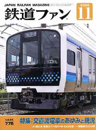 鉄道ファン 2025年11月号 Vol.65−775 定価1300円[本体1182円+税10%] 特集:交直流電車のあゆみと現況 /柴田東吾……………………………………………………………………… 6 [前略]ここでは,旅客輸送で使用される国鉄・JR・私鉄の交直流電車について,そのあゆみと現状を紹介したい. [中略]直流・交流電化の突き合わせ個所(交直セクション)のうち,定期電車列車で通過可能な区間を一覧に示した. [中略]それでは,過去に活躍した車両から現役の車両まで交直流電車の各形式を眺めてみよう. 知る見る乗る写す 開業20周年を迎えるつくばエクスプレス /結解 学・渡部史絵…………………………………………………………40 新車ガイド 一畑電車8000系/井上大輔…………………………………50 CAR INFO…………………………………………………………………54 首都圏情報コレクション/大沼一英……………………………………………58 疾風激走/伊藤久巳………………………………………………………………60 閉幕まであと3週間 大阪・関西万博アクセスの状況/伊原 薫…………………………………62 EF64形1000番代 開発のころを振り返って/佐藤芳彦……………66 日本貨物鉄道株式会社 大宮車両所の一年 2024〜2025……………………………………70 東急電鉄9000系・2000系の足跡 9000系の登場と概要編 /荻原俊夫……………………………………76 大手私鉄の2連 4 阪神・南海/柴田東吾…………………………………82 大手私鉄の形式・車号の付け方 2025 第8回 阪神電気鉄道・南海電気鉄道/楠居利彦…………………………88 プレイバック・展望館 飯田線-6 〜電気機関車たち〜/久保 敏………………………………………………94 路面電車 40年間の軌跡を訪ねて/寺田裕一……………………………100 日本の鉄道遺産 保津峡から名古屋へ -向野橋(こうやばし)-/小野田 滋……………………………………106 由利高原鉄道鳥海山ろく線40周年/佐藤和博……………………………112 FP−Azusa Presents 鉄道・車両メカ探訪 第7回 小田急3000形のすごさ SE車にそそがれた技術と工夫/梓 岳志………………………………116 海外蒸機を見に行こう 第7回 海辺を走るダージリン 〜イギリス西部〜 311mm軌間/いのうえ・こーいち……………………………………120 REPORT……………………………………………………………………124 POST…………………………………………………………………………128 出来事……………………………………………………………………………141 車内放送…………………………………………………………………………142 カレチ/JR東日本 車両のうごき(7月分)……………………………147 ●形式図:一畑電車8000系 デハ8000(cMc)………………154 ■表 紙/205系の取替用として仙石線に導入される,JR東日本 E131系800番代 写真:編集部 ■目 次/写真:編集部 |