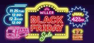 WILLER MARKETING株式会社 年末年始の帰省・旅行をお得に! 移動予約サイト「WILLER TRAVEL」で『WILLERブラックフライデーセール』開催 〜12月・1月出発の高速バスや宿泊付きプランを特別価格で販売〜 WILLER MARKETING株式会社(本社:大阪府大阪市、代表取締役社長:辻本 宗男)は、全国の高速バスがお得に予約できるキャンペーン『WILLERブラックフライデーセール』(URL:https://travel.willer.co.jp/campaign/blackfriday/)を、移動予約サイト「WILLER TRAVEL」にて、2025年11月25日(火)12:00〜12月2日(火)12:00まで実施します。 年末年始は、旅行や帰省などで全国的に人の移動が集中しますが、今年も費用が通常より高騰する傾向がみられています。そんな中で、特に若年層を中心に「移動コストの負担」を感じ、移動控えを考えられている方も多くいることが考えられます。 そこでWILLERでは、誰もが気軽に旅行や帰省などを楽しめるよう、ブラックフライデーに合わせて期間限定のセールを実施します。『WILLERブラックフライデーセール』を通じて、年末年始の移動を少しでもお得に、早めの予約で計画的な旅をサポートします。 今回の『WILLERブラックフライデーセール』では、高速バス「WILLER EXPRESS」のバス運賃が最大42%OFFになるほか、全国の高速バス事業者の路線(※1)で使える500円分のWEBクーポンを600名様にプレゼントします。セール期間は11月25日(火)12:00〜12月2日(火)12:00までの7日間です。さらに、SNSキャンペーンとして、WILLER TRAVEL公式Instagramをフォロー&コメントで、高速バス「WILLER EXPRESS」で使える最大15,000円分のWEBクーポンがその場で当たる抽選“トク乗りクーポンチャレンジ”へ参加いただけます。 是非、年末年始の旅行や帰省にご利用ください。 今後もWILLERは、お客様に寄り添い、お客様のニーズを満たすとともに新たな体験価値をお届けします。 ■『WILLERブラックフライデーセール』詳細 <特設ページ> https://travel.willer.co.jp/campaign/blackfriday/ <予約期間> 2025年11月25日(火)12:00〜12月2日(火)12:00 <実施内容> @ 高速バス「WILLER EXPRESS」が最大42%OFFになるセールを実施 人気路線の東京⇔大阪の4列シート「Prime(プライム)」が基本運賃6,500円のところ、WILLERブラックフライデーセールで4,500円となるなど、期間限定のお得なセールです(席数限定)。 ・出発期間: 2025年12月1日(月)〜2026年1月31日(土) ・対象路線:「WILLER EXPRESS」の全11路線の昼/夜行便 ※各種割引適用外です。 ※席数限定販売のため、販売開始直後に売り切れとなる場合があります。 ※「当日無料シートランクアップ」及び「便変更サービス」がご利用いただけません。 A 早いもの勝ち!全国の高速バス路線で使える500円分のWEBクーポンをプレゼント 予約サイト「WILLER TRAVEL」で販売中の高速バス路線(※)で使える500円分のWEBクーポンをプレゼントします。年末年始の予約にも利用いただけます。 ・出発期間:2025年11月25日(火)〜2026年2月2日(月) ・対象路線:全国各地の高速バス路線の昼/夜行便 ※WILLER EXPRESS/STAR EXPRESS、非予約路線を除くすべての高速バス路線 ・対象者:先着600名様 ※先着順のため、クーポンの予定配布枚数に達し次第、終了となります。 ※クーポンの取得は、おひとり様1枚までです。 ※割引後の金額がおひとり様4,000円以上の場合のみ、クーポンをご利用いただけます。 B 「高速バス+ホテル」セットプランをお得なパッケージ価格で販売 高速バスとホテルを一度にまとめて予約できる便利なプランを期間限定価格で販売します。高速バスは「往復」または「片道のみ」から選べ、ホテルもテーマパーク周辺ホテルやバス停からアクセス良好なホテルなど予定に合わせて柔軟に選択いただけます。 C Instagramからフォロー&コメントで参加!抽選で当たる「トク乗りクーポンチャレンジ」 WILLER TRAVEL公式Instagram(https://www.instagram.com/willer_travel/)をフォロー&コメントするだけで、高速バス「WILLER EXPRESS」で使える最大15,000円分のWEBクーポンがその場で当たる抽選に参加いただけます。 ・抽選期間:2025年11月25日(火)〜12月2日(火) ・当選者数:20名様 ※参加方法などの詳細は、Instagramの投稿をご確認ください。 ※予約やクーポンの取得には、WILLER会員登録(無料)が必要です。 ※『WILLERブラックフライデーセール』の詳細は、特設ページ(https://travel.willer.co.jp/campaign/blackfriday/)をご覧ください。 |