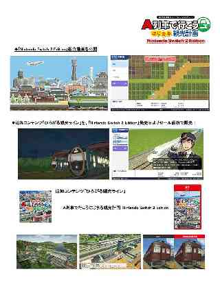 発売元・企画・開発アートディンク ■A列車で行こう はじまる観光計画 Nintendo Switch 2 Edition ゲーム紹介動画を公開! & DLC期間限定半額セール実施 株式会社アートディンクは企画・開発・販売を行なう、都市開発鉄道シミュレーションゲーム「A列車で行こう はじまる観光計画 Nintendo Switch 2 Edition」が来週12月18日(木)に発売されます。 本日12月11日(木)に、ゲームの流れや「Nintendo Switch 2 Edition」の特徴を紹介する動画を公開しました。 加えて、実在車両を追加するDLC「ひろがる観光ライン」を12月18日(木)よりセール価格で発売いたします。 ◆「Nintendo Switch 2 Edition」紹介動画を公開 5分ではじまるA列車がわかる!ゲーム紹介動画を公開しました。 「Nintendo Switch 2 Edition」で改良されたグラフィックや、鉄道をつかった街づくりの醍醐味を体感しましょう! ナレーションは西武鉄道・東武鉄道などの自動アナウンスを担当されている、女子鉄アナウンサー・久野知美さんです。 Nintendo Switch 2 「A列車で行こう はじまる観光計画」ゲーム紹介動画【はじまるA列車】 動画URL:https://youtu.be/Qni5Lc5tvzs 配信元 :アートディンク公式チャンネル (https://www.youtube.com/user/ARTDINKmovie) ◆追加コンテンツ「ひろがる観光ライン」を、 「Nintendo Switch 2 Edition」発売日よりセール価格で販売! 「A列車で行こう はじまる観光計画 Nintendo Switch 2 Edition」の発売を記念して、好評発売中の追加コンテンツ「ひろがる観光ライン」を期間限定50%オフで販売いたします。 日本全国を走る旅客列車総勢33車両を、あなたの街に走らせましょう。 追加コンテンツ「ひろがる観光ライン」 価格 :税込1,364円 50% OFF! 販売場所:ニンテンドーeショップ https://store-jp.nintendo.com/item/software/D70050000036455 セール期間 :2025年12月18日(木)〜2026年1月13日(水)23:59 ◆製品紹介 「A列車で行こう はじまる観光計画」は、線路を敷いて沿線を開発し、観光地の魅力で発展を促して、様々な街の課題を解決するシミュレーションゲームです。かつて鉄道会社が取り組んだ、鉄道と観光による街づくりをあなたの手で体感できます。 そんな「A列車で行こう はじまる観光計画」のNintendo Switch 2 Editionが、2025年12月18日(木)に発売! より美麗に遊びやすくパワーアップし、これまでの魅力をいっそう引き立てます。 ◆「A列車で行こう はじまる観光計画 Nintendo Switch 2 Edition」について ジャンル :都市開発鉄道シミュレーション プレイ人数:1人 対応言語 :日本語、英語、中国語(繁体字 / 簡体字)、韓国語 ※シナリオの追加は日本語のみです。 発売日 :2025年12月18日(木) CERO :A 公式サイト:https://www.artdink.co.jp/japanese/title/a-tourism/sw2/ A列車で行こうはじまる観光計画 Nintendo Switch 2 Edition 「はじまる観光計画」をお持ちでない方向けの、本編ゲーム+アップグレードパスのセット商品です。 メディア:パッケージ(ガイドブックパック) / ダウンロード 価格 :パッケージ(ガイドブックパック) 9,460円(税込10,406円) ダウンロード 8,980円(税込9,878円) 販売場所:ニンテンドーeショップ https://store-jp.nintendo.com/item/software/D70010000104146 A列車で行こう はじまる観光計画 Nintendo Switch 2 Edition アップグレードパス 既に「はじまる観光計画」「ひろがる観光ライン」をお持ちの方向けの、アップグレード部分のみのお得な商品です。 メディア:ダウンロード 価格 :2,000円(税込2,200円) 販売場所:ニンテンドーeショップ https://store-jp.nintendo.com/item/software/D70050000066458 【製品詳細】 製品名 A列車で行こう はじまる観光計画 Nintendo Switch 2 Edition 発売日 2025年12月18日(木)発売予定 価格 パッケージ(ガイドブックパック) 9,460円(税込10,406円) ダウンロード 8,980円(税込9,878円) 公式サイト https://www.artdink.co.jp/japanese/title/a-tourism/sw2/ |