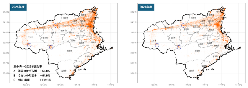 (※1)株式会社ブログウォッチャーの位置情報データを用い、2025年4月13日〜10月13日の期間に、大阪・関西万博会場内で1回以上訪問したユーザーの周遊行動を分析。取得期間は、2025年4月13日〜12月31日(万博開催期間および閉幕後を含む約8.5カ月間)、2024年4月13日〜12月31日(前年同時期・約8.5カ月間)とし、両年の比較分析を行った。 ■本研究のポイント ※研究の詳細は報告書をご参照ください。 ( https://jrc.jalan.net/wp-content/uploads/2026/03/expo2025_osaka_report.pdf ) 分析の結果、大阪・関西万博の延べ来場者の居住地は近畿圏が中心である一方、ユニーク来場者ベースでは関東・中部など広域からの参加が一定割合を占めることが確認されました。 さらに、全国の日本人の宿泊旅行者数が減少傾向にあるなか、万博来場者層に限定すると、開催期間中および閉幕後にかけて、近畿圏を中心に周辺地域への訪問・新規宿泊が広がる動きが確認されました。 これらの結果は、万博を契機として、国際イベントが開催地周辺にとどまらず、来場者の周遊を広域へと波及させる可能性を示唆するものです。 ■分析結果(1)来場者構造 ・延べ来場者数では近畿圏(※2)が中心、ユニーク来場者数では広域からの参加を確認 万博開催期間中に取得された位置情報データを基に、来場者の居住地構成を分析したところ、延べ来場者では近畿からの来場者が7割以上を占めました。一方、ユニーク来場者数で見ると近畿圏の構成比は約5割となり、関東圏や中部圏など広域からの参加比率が相対的に高まる傾向が確認されました。(図1) 画像1: 図1 大阪・関西万博来場者の居住地構成(地域別) また、位置情報データおよび博覧会協会公表のチケット情報を基に推計した「万博IDなしチケット来場者」の居住地構成では、近畿が33.7%と低下し、関東(28.8%)・中部(16.2%)・九州・沖縄(8.0%)・中国(5.2%)・四国(3.4%)・東北(2.7%)・北海道(2.2%)と各地域の構成比が上昇しました。(図2)地域別に万博IDあり・なしの来場比率を見ると、近畿圏外は「万博IDなしチケット来場者」が一定割合存在することが確認できます。(図3) 画像2: 図2 万博ID別来場者の居住地構成(地域別) 画像3: 図3 万博IDあり・なしチケット保有の割合(地域別) さらに来場回数の分析では、近畿圏は複数回来場のリピーター比率が高い一方、関東圏は単発来訪が中心となるなど、近隣層と遠方層で来訪構造が異なることが確認されました。近隣圏では複数回の来場(リピート)によって延べ人数が積み上がりやすい一方、「万博IDなしチケット来場者」には、遠方からの来場者やライト層が相対的に多く含まれていることが推測されます。 (※2)大阪府、奈良県、兵庫県、滋賀県、和歌山県、京都府、三重県。 ■分析結果(2)万博を契機とした宿泊需要の増加 ・万博来場者層の宿泊行動が活発化 新規宿泊が離反を上回る県が近畿圏を中心に広域へ拡大 観光庁の宿泊旅行統計調査では、2025年4月から12月までの全国の日本人の宿泊旅行者数は前年同期比で減少しています。一方、万博来場者のうち、本パートで分析対象とした、2年連続で居住地以外の都道府県への宿泊旅行を行っていた旅行者に着目すると、2025年は宿泊を伴う旅行行動がより活発化していることが確認されました。これは、全国的に宿泊旅行者数が減少傾向にあるなかで、万博来場者層では相対的に積極的な宿泊・周遊行動が行われていたことを示唆しています。 都道府県別に、2024年に宿泊していたが2025年は宿泊しなかった来訪者(離反)と、2024年は宿泊していなかったが2025年に新たに宿泊した来訪者(新規)を比較しました。その結果、万博開催期間中は近畿圏のみならず、中四国や愛知県、静岡県などで、新規の増加が、宿泊を継続しなかった来訪者の減少を上回る傾向が確認されました。特に大阪府では、新たに宿泊した来訪者の割合が大きく上回っており、開催地として万博来場者層の宿泊需要を相対的に多く取り込んだ可能性が示唆されます。閉幕後の期間を含めても、近畿圏を中心に四国の一部までプラス傾向が継続しており、万博来場者層における宿泊行動の活性化が持続している様子がうかがえます。(※3) 上記の結果から、万博が単一目的地のイベントにとどまらず、広域周遊を伴う宿泊需要を創出した可能性が示唆されます。一方、万博開催期間中・閉幕後で、新規の増加よりも離反の減少が上回る都道府県も観察されました。万博開催により、従来の旅行客の宿泊地のシフトにつながった可能性も考えられます。(図4) 画像4: 図4 万博来場者における宿泊行動の変化 (※3)「新規獲得」が「離反」を上回った都道府県…(左図・獲得率が高い順に)大阪府、奈良県、兵庫県、滋賀県、香川県、和歌山県、京都府、静岡県、岡山県、徳島県、愛知県、高知県、三重県、青森県、広島県、山口県。(右図・獲得率が高い順に)大阪府、奈良県、香川県、兵庫県、滋賀県、高知県、和歌山県、静岡県、徳島県、岡山県、愛知県。 ■地域事例 こうした分析結果を踏まえ、万博