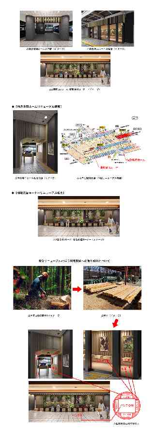 東武鉄道株式会社 2025年10月15日 日光への期待感を表現 北千住駅の特急専用ホーム・ 情報発信コーナーが生まれ変わります! 〜社有山林の間伐材を使用し、環境保全に取り組みます〜 東武鉄道株式会社 東武鉄道(本社:東京都墨田区)では、2025年11月より東武スカイツリーライン北千住駅において、特急専用ホームならびに2階南コンコースの情報発信コーナーのリニューアル工事を開始します。なお、完成時期については、情報発信コーナーは2025年度下期、特急専用ホームについては、2026年度中の完成を予定しています。 本工事については「つなぐ」をコンセプトとしており、2023年7月のスペーシアXデビューにあわせて行った浅草駅・東武日光駅のリニューアル工事の第二弾になります。北千住駅はスペーシアXの玄関口として、東武日光駅との空間的なつながりや日光体験への期待感を醸成する場となるようイメージしました。 特急専用ホームでは、2023年度の浅草駅同様に、日光の自然や荘厳さを感じさせる木目調の装飾と光の演出を多用したデザインにてリニューアルを計画しています。待合室には、当社の社有山林の間伐材を使用したベンチの設置に加え、床面にも社有山林の間伐材を使用します。また、2階南コンコースの情報発信コーナーの一部を改修し、日光・鬼怒川の魅力をより皆様に広められる空間づくりを目標に、壁面の改修と社有山林の間伐材を使用したベンチの設置を行います。 当社では、今後も駅リニューアルの際に間伐材を積極的に使用し、環境保全の取り組みを推進してまいります。 詳細は別紙のとおりです。 <別紙1> 北千住駅 待合空間リニューアルの概要 ◆【特急専用ホームリニューアル概要】 1 改修範囲 特急専用ホーム(入り口部分含む) 2 構造・規模 鉄骨造(一部鉄筋コンクリート造)1階部分 [待合室全面改修、特急専用改札周辺ゲート設置など] 3 設計会社 株式会社乃村工藝社 4 施工会社 東武谷内田建設株式会社 5 工事期間 2025年度下期〜2026年度 ◆【情報発信コーナーリニューアル概要】 1 改修範囲 2階南コンコース約36.5uほか 2 構造・規模 鉄筋コンクリート造 2階部分 [壁面・床面改修、間伐材ベンチ設置など] 3 設計会社 株式会社乃村工藝社 4 施工会社 東武谷内田建設株式会社 5 工事期間 2025年度下期 以 上 <別紙2> 駅舎リニューアルに伴う環境配慮への取り組みについて このリニューアルでは、社有山林で切り出された間伐材を、駅のベンチ等に使用しました。間伐材を産出した社有山林では、間伐のほか下刈り・枝打ちなど適正な管理が施されており、この管理により吸収されたCO2について、経済産業省が所轄する国内クレジット制度で認証され、J−クレジットとして流通することができます。 以 上 |
