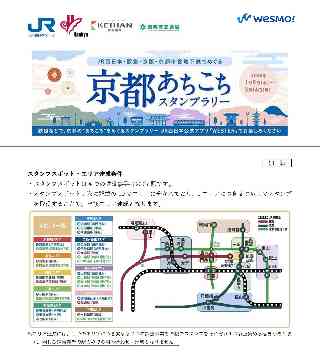 西日本旅客鉄道株式会社 阪 急 電 鉄 株式会社 京阪電気鉄道株式会社 京 都 市 交 通 局 JR西日本・阪急・京阪・京都市営地下鉄でめぐる 「京都あちこちスタンプラリー」を実施します! 西日本旅客鉄道株式会社(本社:大阪市北区、代表取締役社長:倉坂 昇治、以下「JR西日本」)、阪急電鉄株式会社(本社:大阪市北区、代表取締役社長:嶋田 泰夫、以下「阪急」)、京阪電気鉄道株式会社(本社:枚方市、代表取締役社長:井上 欣也、以下「京阪」)および京都市交通局(本社:京都市右京区、京都市公営企業管理者交通局長:北村 信幸、以下「京都市営地下鉄」)は、JR西日本公式アプリ「WESTER」を活用したデジタルスタンプラリー「京都あちこちスタンプラリー」を開催します。 本スタンプラリーでは、関西の鉄道事業者が連携し、主要駅をスタンプスポットとして設定しており、鉄道などの公共交通機関を乗り継ぎながら、京都の“あちこち”をめぐっていただきます。 ぜひこの機会に京都で新たな発見や周遊の楽しさをご体験ください。 1.開催期間 2026年1月9日(金)〜3月16日(月) 2.参加方法 (1)JR西日本公式アプリ「WESTER」をダウンロード ※スタンプラリーの参加はアプリ内でWESTER会員登録とWESTER IDでのログインが必要です(会員登録無料)。 (2)アプリのホーム画面にある「おトクに GO!」から「京都あちこちスタンプラリー」を選んで参加 (3)スタンプスポット(主要駅)をめぐり、スタンプを集める スタンプは、スタンプスポットのNFCタグ付きポスターにスマートフォンをかざすことで取得できます。 (4)達成条件に応じて、WESTERポイントや、抽選で素敵な賞品をプレゼント 3.スタンプスポット・達成条件 JR西日本・阪急・京阪・京都市営地下鉄の主要駅をスタンプスポットとしています。スタンプスポットは10のエリアに分かれており、1エリアにつき2つ以上のスタンプを取得することで、当該エリア達成となります。詳しくは別紙をご確認ください。 4.特典 達成したエリア数に応じて、次表の特典をプレゼントします。 2エリア (全員)WESTERポイント(基本) 100pt 4エリア (全員)WESTERポイント(基本) 100pt 6エリア (抽選)地下鉄・バス1日券(大人券) 20名様 市バス・地下鉄全線、京都バス※、京阪バス※、西日本JRバス※が 1日乗り放題になるカードです(※一部路線を除く)。 8エリア (抽選)ジェイアール京都伊勢丹セレクト 和雑貨セット 7名様 9エリア (抽選)阪急阪神第一ホテルグループ共通ご利用券(5,000円分) 5名様 10エリア (抽選)ヴィーガン・ベジタリアンフレンドリーのカジュアルレストラン Hyssop/GOOD NATURE STATION 4F ペアディナーチケット 2名様 ※WESTERポイント付与には、アンケートへの回答が必須です。 ※抽選の応募には、アンケートへの回答と応募フォームへの入力が必須です。 ※WESTERポイント付与は2026年4月下旬から順次実施予定です。 ※抽選は2026年3月下旬に行い、プレゼントの発送は2026年5月までに行います。当選者の発表はプレゼントの発送をもって代えさせていただきます。 5.ジェイアール京都伊勢丹でのWesmo!ご利用特典 本スタンプラリーに参加のうえ、期間中にジェイアール京都伊勢丹で Wesmo! 残高より2,000円(税込)以上のお支払いをされた方に、WESTERポイント(基本)100ptをプレゼントします。 Wesmo!(ウェスモ)はJR西日本が提供する決済サービスです。 Wesmo!の使い方等、詳しくはサービスサイトをご確認ください。 URL:https://wester.jr-odekake.net/wesmo/ 6.その他 (1)スタンプラリーの詳細は次のサイトをご確認ください。 URL:https://www.nta.co.jp/maas/kyotoachikochisr/ (2)スタンプラリーのご参加には、JR西日本・阪急・京阪の自由周遊区間が1日乗り放題の「ONE KANSAI 京都満喫3wayパス」(1,800円:税込み)のご利用が便利です。 ※ご利用条件等、詳しくは次のサイトをご確認ください。 URL:https://www.jr-odekake.net/railroad/ticket/tokutoku/kyoto_3way_pass |