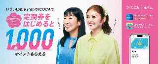 JR西日本グループ Release もっとつながる。未来が動き出す 2026年 3月 2日 いま、Apple Pay のICOCAで定期券をはじめると WESTERポイントが1,000ポイントもらえます! 西日本旅客鉄道株式会社(本社:大阪市北区、代表取締役社長:倉坂昇治、以下「JR西日本」)は、「今なら1,000pt!定期券はApple Payでイコか〜!」を開催します。 ぜひこの機会に、Apple PayのICOCAを始めてみませんか? 詳細は⇒こちら⇒ https://www.jr-odekake.net/icoca/applepay/pointback_cp_2026spring/ NEWS01 期間 2026年3月2日(月)〜2026年5月31日(日) ※先着3万名限定。定員に達し次第終了 NEWS02 対象者 キャンペーン期間中に、「初めて」Apple PayのICOCAをご利用開始し、定期券を購入または 有効期間の残っているICOCA定期券を取り込みされた方 ※キャンペーン期間より前からApple PayのICOCAをご利用されている方は対象外です。 NEWS03 参加方法と達成条件 ステップ1:Apple PayのICOCAの新規発行またはICOCAカードの取り込み ステップ2:WESTERアプリの「おトクにGO!」でICOCA番号を入力してエントリー ステップ3:エントリーしたApple PayのICOCAで定期券を購入 ※条件を達成すると、キャンペーン画面にスタンプが翌日以降7日以内に付与されます。 <スタンプ条件> @ キャンペーン期間中に、STEP1で新規発行または取り込みしたApple PayのICOCAのICOCA番号でエントリー A エントリーしたApple PayのICOCAで、定期券を購入 ※取り込み時点で有効期間が残っているカードタイプのICOCA定期券を取り込みした場合は、新たに購入しなくても条件達成となります。 ※なお、本キャンペーンは株式会社ギックスが提供する"ゲーミフィケーション×データ"による習慣化促進プラットフォーム「マイグル」を活用しています(https://www.mygru.jp)。 NEWS04 ポイント付与時期 2026年6月下旬頃を予定しております。 ※本キャンペーンで付与するポイント種別はWESTERポイント(チャージ専用)です。 ●獲得したポイントのICOCAへのチャージは、ICOCAアプリをご利用ください。 ポイントチャージ方法はこちら(https://www.jr-odekake.net/icoca/applepay/use/charge/) NEWS05 その他ご注意事項 ●下記の方はスタンプが押されていても、ポイント付与対象外となります。 カードタイプのICOCA(SMART ICOCA含む)、Android端末でご利用中のICOCA、 キャンペーン期間より前から既にご利用中のApple PayのICOCA、2枚目以降のApple PayのICOCA(過去に払いもどし後に新規発行した場合も2枚目以降として扱います) ●エントリーの際に入力されたICOCA番号は、変更できません。 ●Apple PayのICOCAの払いもどし、機種変更、紛失・故障・通信不良等によりApple PayのICOCAがご利用いただけなくなった場合など、スタンプが付与されていてもポイント付与の対象外となる場合があります。 ●キャンペーンご参加前に必ずキャンペーンページをご確認ください。 (https://www.jr-odekake.net/icoca/applepay/pointback_cp_2026spring/) ※ 対応機種:iPhone 8以降、Apple Watch Series 3以降、最新バージョンのiOSまたはwatchOS NEWS06 さらにおトクなキャンペーン情報 1.モバイルICOCAでお買い物しトク!?キャンペーン 期間:2026年3月1日(日)〜2026年3月31日(火) 特典:7%還元 (付与上限あり) 種別:WESTERポイント(チャージ専用) 詳細:https://www.jr-odekake.net/icoca/campaign/okaimono_cp_2025/ 2.J-WESTカードでチャージしトク!?キャンペーン 期間:2026年3月1日(日)〜2026年3月31日(火) 特典:最大3%(ゴールドカードなら最大6%)還元 (付与上限あり) 種別:WESTERポイント(期間・用途限定) 詳細:https://wester.jr-odekake.net/campaign/detail/012027022703 ※ ICOCA は西日本旅客鉄道株式会社の登録商標です。※ Apple、Apple のロゴ、Apple Watch、Apple Pay、Apple Wallet、iPhone は Apple Inc.の登録商標です。※ iPhone 商標はアイホン株式会社のライセンスに基づき使用されています。※ Androidは Google LLC の商標です。 ※記載の内容はすべて現時点での情報であり、変更となる可能性があります。 |