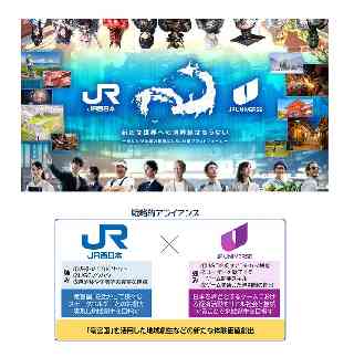 JR西日本グループ Release もっとつながる。未来が動き出す 2026年 3月12日 西日本旅客鉄道株式会社 JP UNIVERSE 株式会社 JR西日本とJP UNIVERSE株式会社が 戦略的アライアンスを締結 〜「竜宮国」を活用した地域創生などの新たな体験価値創出を目指す〜 西日本旅客鉄道株式会社(本社:大阪市北区、代表取締役社長:倉坂 昇治、以下「JR西日本」)とJP UNIVERSE株式会社(本社:東京都千代田区、代表取締役:田畑 端、以下「JP UNIVERSE」)は、XR(クロスリアリティ)領域において、地域創生などの社会課題解決を基軸とした新たな体験価値創出を目的として、JP UNIVERSEの提供するRPG型プラットフォーム「竜宮国」との連携にむけた戦略的アライアンスを締結したのでお知らせします。 JR西日本では、これまでリアルで多様な社会性や機能性を有する『駅』をバーチャル上に再現・拡張する試みとして「バーチャル・ステーション」の構築に取り組んできました。バーチャル・ステーションは、国内外の数多くのお客様から高い評価を受け、シリーズ累計で5,000万人以上のお客様にご来場いただいております。バーチャル・ステーションでは、リアルとの連動やUGC (User Generated Content:ユーザー生成コンテンツ) といった、共創アプローチによる新たな価値創造を推進しています。 一方で、現実の地域社会は少子高齢化や人口流出、産業の空洞化、行政サービスの継続困難といった複合的な課題に直面し、従来の行政主導や企業単独の取組みだけでは解決が困難になっています。今求められているのは、「住民・企業・自治体」等が一体となって継続的に関わり合う“共創の仕組み”です。 こうした状況を踏まえ、JR西日本とJP UNIVERSEはRPG型プラットフォーム「竜宮国」を軸とする“共創型社会課題解決事業”を開始します。「竜宮国」は、“もうひとつの日本”をコンセプトに現実の47都道府県を舞台とする空間を構築し、その中の世界・アイテム・イベント等をユーザーが変化・拡張させることができるプラットフォームです。本事業では、ゲームとリアルがつながる経済圏の創出、ゲームをフックとした観光資源や地場産品の地域経済の振興、ユーザー・企業・自治体等の様々なステークホルダーが地域創生に関わる、共創による新たな価値創出の実現を目指します。 戦略的アライアンスの締結に向けた想い 今回締結する戦略的アライアンスは、日本の地方が抱える問題を中心とする社会課題に対して、リアルとバーチャルの双方から「共創型」で解決のアプローチを図る両社の決意を示すものです。両社は、地域創生に対する課題とその課題を解決するための新たな価値創出をしたいという強い志を共有しており、XRやテクノロジーを活用した全員参加の“共創”により実現することを目指します。 JR西日本が培ってきた鉄道事業をはじめとするリアルアセットや自治体・企業等の地域との豊富な接点と、JP UNIVERSEのバーチャル分野におけるゲームの世界観やUGCを促す仕組み作りは、新たな価値創出に向けて高め合う関係性です。両社の強みを掛け合わせることで、リアルとバーチャルがつながる革新的な顧客体験や、誰もが参加することのできる共創型プラットフォームを構築し、新たな地域創生の在り方を実現することを目指します。 両社で実現するミライ @ 日常と非日常が一体化するミライ 現実世界とゲーム(バーチャル)を相互に連関させることで、ゲーミフィケーション技術で日常生活とエンターテイメントの境界をなくし、かつてない顧客体験の実現を目指します。 A ユーザーと事業者が共創するミライ 一方的な提供ではなく、共に創る“UGC”のノウハウを生かし、ユーザーの創造性と企業の事業活動が融合して新たな価値を生むプラットフォーム創出の実現を目指します。 B 様々なステークホルダーが地域創生するミライ 企業・自治体・個人といった社会のあらゆるステークホルダーに有用な事業プラットフォームへと育成することで、「地方創生2.0」が掲げる社会全体を通じた共創を実現し、持続可能な発展を目指します。 本取組みは、ゲームをフックにして様々なステークホルダーとの共創を通じた、「共創型」アプローチで地域創生を行うといった新たな価値創造の実現を目指します。まず第一弾として、鳥取県をベースとした「竜宮国・鳥取」を2026年中に開始予定です。詳細は今後プレスリリース等でお知らせしますので、ご期待ください。 【参考】竜宮国について 「竜宮国」とは、JP UNIVERSE株式会社が、国内有数の企業から賛同いただき推進している「ジャパン・メタバース経済圏構想」を実現すべく開発を進めている、RPGというゲーム世界を基盤とした創作・経済プラットフォームです。「日本を世界へ」をコンセプトに、日本神話をモチーフとしたRPG空間内に、クリエーターエコノミーと企業プロモーションを統合した経済圏を創り出す挑戦的なサービスです。竜宮国は独自ミドルウェア「OwnWorld」を通じて、他の創作プラットフォー