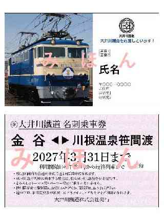 2026年 3月31日 応援の輪を広げる、小さな一枚 創立100周年を契機に誕生した「名刺乗車券」を今年も発売します 大井川鐵道株式会社(本社:静岡県島田市・代表取締役社長:鳥塚 亮)は、昨年に続き「名刺乗車券」を大井川鐵道 ONLINE SHOP 限定で発売いたします。 本商品は、創立100周年記念事業として2025年に販売を開始したもので、2022年の台風被害により一部区間の不通が続く中、沿線や県内外の多くのみなさまから寄せられた全線復旧への応援の声に支えられ、今年も継続して販売するものです。 名刺乗車券は、名刺サイズの乗車券100枚を1セットとして販売する特別企画乗車券で、表面にはお名前やご住所などを印字でき、「名刺」としてご挨拶などの際にお渡しいただけるようになっています。また、裏面は大井川本線の普通列車に1回ご乗車いただける乗車券となっていて、お渡しいただいた相手の方も実際の乗車券としてお使いいただけます。「応援の気持ちを手渡せる乗車券」として、昨年は県内外の企業・団体・個人のお客様からご好評をいただきました。 大井川鐵道は、地域に根ざす公共交通機関として、沿線の暮らしと観光を未来へつなぐことを使命としています。名刺乗車券は、そうした想いをお客様とともに分かち合い、応援の気持ちを形にしていただける取り組みとして、今年も販売を続けてまいります。詳細は以下の通りです。 名刺乗車券とは 名刺乗車券は、表面には名刺の主な記載事項(氏名・組織名・肩書・住所・連絡先 等)が印字され、裏面が大井川本線の特別乗車券になっている商品です。 ご挨拶の場で「大井川鐵道を応援しています」と添えて名刺としてお渡しするほか、旅好きの方への贈り物、自分用のコレクションとしてもご活用いただけます。 販売期間 2026年4月1日〜6月30日 利用期間 2026年4月6日〜2027年3月31日 価格 (税込) 100枚セット 12,000円 (乗車券代+印刷費) 販売場所 大井川鐵道 ONLINE SHOP 限定 注文方法 オンラインショップの商品ページに、券面の記載事項をご指定いただくフォームのURLを設置しています。ご注文後に必要事項をご入力ください。 ※ 受注生産品につき、原稿の確認が完了後、お届けまで2週間程度お時間を頂戴します。 主な効力など: ●1枚で1回、午前9時以降に限り、大井川本線(金谷.川根温泉笹間渡)の普通列車でご利用いただけます。 ●別途、急行券をお買い求めいただければEL急行にもご乗車いただけます。 ●名刺交換などでお渡しした相手の方も乗車券としてご利用になれます。 注意事項: ●きかんしゃトーマス号・パーシー号、Train Dining オハシ・夜行列車などのイベント列車ではご利用 いただけません。 ●ご利用可能時間は午前9時.最終列車までです。 ●大人券片1枚で小児2名のご利用はできません。 ●乗車変更・払い戻しはできません。 |