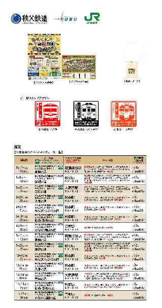 秩 父 鉄 道 株 式 会 社 東 武 鉄 道 株 式 会 社 東日本旅客鉄道株式会社高崎支社 ちちぶふだしょうまどしそうかいちょう 秩父札所午歳総開帳記念!駅スタンプラリー×ハイキング 「思い出の列車&札所ハイキングラリー」を開催します 2026年は、12年に一度行われる埼玉県の秩父地域にある 34寺院(秩父札所)の「午歳総開帳」の年にあたります。この御開帳に合わせて、秩父鉄道株式会社・東武鉄道株式会社・東日本旅客鉄道株式会社高崎支社(以下、「JR東日本」)は、駅スタンプラリーと秩父札所をめぐるハイキングを楽しむことができる「思い出の列車&札所ハイキングラリー」を初開催します。条件を達成した方には先着でオリジナル納経帳入れをプレゼント!列車を利用した駅めぐりと、ハイキングでの秩父札所めぐりの旅へ出かけてみませんか。 1.午歳総開帳とは 秩父札所の34寺院では、12年に一度の午歳にのみ、すべての観音様の扉が開かれる「総開帳」が行われます。普段は見ることができない御本尊を直接拝むことができる非常に貴重な期間であり、この期間中の巡礼は、秩父の美しい自然を歩きながら歴史ある観音様との出会いを楽しむことができる、特別なひとときとなります。 2.「思い出の列車&札所ハイキングラリー」概要 秩父鉄道・東武鉄道・JR東日本でかつて活躍していた列車がデザインされたスタンプを集める駅スタンプラリーと、秩父札所をめぐるハイキングを一緒に楽しむことができます。条件を達成した方には、先着でオリジナル納経帳入れをプレゼントします。 (1)開催期間 2026年 4月17日(金)〜11月30日(月) (2)駅スタンプ・ハイキング参加印について 東武鉄道・秩父鉄道・JR東日本のそれぞれ1駅(計3駅)に本ラリー用の駅スタンプを設置し、対象ハイキングコース(別紙参照、全 14コース)受付場所には参加印を用意しています。パンフレット内の押印スペースに対象3駅分+対象ハイキングコース参加印5回分を押印することで条件達成です。 @駅スタンプデザイン *伊藤注:添付画像をご覧下さい。 Aスタンプ設置駅概要 ┌──────────┬──────────┬──────┐ │ スタンプ設置駅 │ スタンプ設置場所 │押印可能時間│ ├──────────┼──────────┼──────┤ │秩父鉄道 秩父駅 │ 改札内 │ 6:00〜21:00│ ├──────────┼──────────┼──────┤ │東武鉄道 ふじみ野駅│ 改札外 │ 初電〜終電 │ ├──────────┼──────────┼──────┤ │JR東日本 上尾駅 │改札外みどりの窓口内│ 初電〜23:50│ └──────────┴──────────┴──────┘ Bハイキングでの参加印 対象ハイキングコースの各受付場所にて、受付時間内にスタッフへお声がけください。 ※本企画用の特別なスタンプデザインではありません。 (3)賞品 名称 オリジナル納経帳入れ (縦 240o×横 170o) 引換条件 全駅スタンプ押印+対象ハイキングコース5回参加 (5回分の参加印押印) 【引換場所】対象札所めぐりハイキングコースの各受付場所 【引換期間】2026年 4月17日(金)〜11月30日(月) 9:00〜11:00 【賞品イメージ】*伊藤注:添付画像をご覧下さい。 ※参加費は無料です。スタンプ設置駅への移動や賞品引き換えに伴う移動、対象ハイキング参加にかかる交通費はお客さま負担となります。 ※賞品の引換えはお1人さま1回までです。賞品の転売は固くお断りしています。 ※賞品の数には限りがあります。無くなり次第終了となります。 ※輸送障害発生時や混雑時は、引換えに時間がかかる場合があります。 ※イベントの内容等は、予告なく変更・中止となる場合があります。 ※写真やイラスト等は全てイメージです。 ※掲載内容は2026年4月現在のものです。 |
