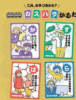 北海道旅客鉄道株式会社 東北鉄道協会 東日本旅客鉄道株式会社 北陸信越鉄道協会 東海旅客鉄道株式会社 関東鉄道協会 西日本旅客鉄道株式会社 中部鉄道協会 四国旅客鉄道株式会社 関西鉄道協会 九州旅客鉄道株式会社 中国地方鉄道協会 東京都交通局 四国鉄道協会 一般社団法人日本民営鉄道協会 九州鉄道協会 カスハラの防止啓発に関する鉄道事業者の取組みについて 〜今年度も鉄道事業者が共同で、カスハラ防止啓発に係るポスターを掲出します!〜 〇鉄道事業者各社局と各鉄道協会は、この度一体となってカスタマーハラスメント対策に取り組むべく、カスタマーハラスメント (以下、「カスハラ」という。)の防止に向けた啓発ポスターの掲出を実施いたします。 〇お客さまへ継続的に安全で質の高いサービスを提供していくために、お客さまからのご意見・ご要望に対して、これからも真摯に対応していく一方で、カスハラに対しては毅然とした対応を行います。 〇2025年度に続き、鉄道業界全体で一体となってカスハラに対する取組みを推進してまいります。 1 実施期間 2026年 4月13日(月)より順次掲出開始 2 実施事業者 JR北海道、JR東日本、JR東海、JR西日本、JR四国、JR九州、東京都交通局、一般社団法人日本民営鉄道協会、東北鉄道協会、北陸信越鉄道協会、関東鉄道協会、中部鉄道協会、関西鉄道協会、中国地方鉄道協会、四国鉄道協会、九州鉄道協会 ※民鉄各社につきましては、各鉄道協会経由で参加いたします。 3 実施内容 (1) 駅等でのポスター掲出 (2) デジタルサイネージでのポスター画像放映 ※各社局により実施内容は異なります。 4 啓発ポスターのコンセプト 気づかぬうちに行ってしまうカスハラを、かるたのイラストで表現し、ご覧の方に気づいていただけるようなメッセージを掲載しております。 |