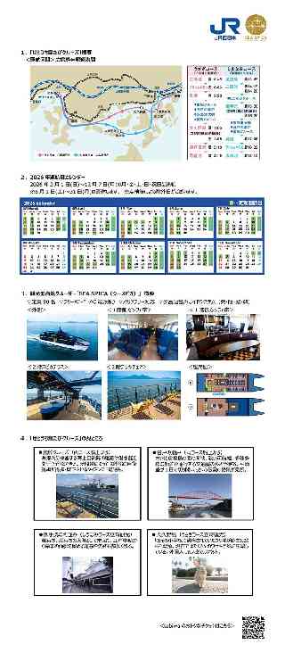 2026年2月4日 西日本旅客鉄道株式会社 瀬戸内海汽船株式会社 2020年に運航を開始し、瀬戸内海の多島美を船上から満喫できるコースにご好評をいただき、累計50,000名を超える皆さまにご乗船いただいた【SEA SPICA「せとうち島たびクルーズ」】について、2026年度の運航計画をお知らせいたします。 2025年3月には就航から5周年を迎えることを機に、航路リニューアルとして尾道まで延伸しており、魅力的なコースとなっております。引き続き、観光列車「etSETOra」や山陽新幹線と組み合わせてせとうちエリアを周遊しやすく、かつ地域の魅力を満喫いただけます。ぜひ、せとうち広島の自由で開放的な船旅をお楽しみください。 1.「せとうち島たびクルーズ」概要 2.2026年運航日カレンダー 2026年3月1日(日)〜12月7日(月)の月・金・土・日・祝日に運航 3.観光型高速クルーザー「SEA SPICA(シースピカ)」 概要 4.「せとうち島たびクルーズ」の見どころ *伊藤注:以上4項目は添付画像をご覧下さい。 5.発売方法 ●JR西日本観光ナビ『tabiwa by WESTER』で、「せとうち島たびクルーズ」のデジタルチケットを特別価格で発売します。 ・価格:tabiwa特別価格 大人お一人様8,000円 ※通常価格は 大人お一人様8,500円 です。 ・発売:tabiwaでは、各運航日の1か月前より発売します。 ●瀬戸内海汽船トラベルサービスのホームページまたは窓口では、「SEA SPICAお手軽乗船プラン」や、三原では「たこ会席の昼食」がセットになったプラン、尾道では「千光寺山ロープウェイ」がセットになった旅行商品などの販売を予定しています。 <瀬戸内海汽船HP> http://setonaikaikisen.co.jp/simatabi/ |