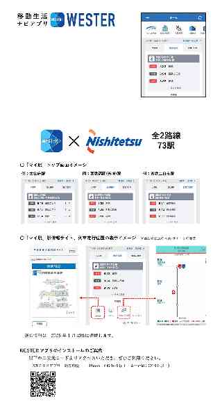 2025年12月16日 西日本旅客鉄道株式会社 西 日 本 鉄 道株式会社 WESTERアプリが大きくパワーアップ! 〜西日本鉄道全駅での「マイ駅」登録・列車走行位置表示を開始!〜 西日本旅客鉄道株式会社が提供する移動生活ナビアプリ『WESTER』は、2025年12月16日(火)のアップデートにより、西日本鉄道全駅での「マイ駅」登録が可能となりました。 ぜひ、最新のWESTERアプリをインストールいただき、便利な機能をご体験ください! WESTER「マイ駅」機能のご紹介 お客様が、お気に入りの駅・電停を「マイ駅」に登録することで、その駅の時刻表や駅設備情報等をアプリホーム画面から簡単にご確認いただけます。 ※「マイ駅」は、お気に入りの駅を3駅までご登録いただけます。 NEWS 西日本鉄道全駅が「マイ駅」登録の対象に!列車走行位置も連携! 西日本鉄道の全駅(2路線73駅)が「マイ駅」登録の対象となり、駅の時刻表や駅設備情報などが、WESTERアプリホーム画面から簡単に確認できるようになりました。また、列車走行位置の機能も連携し、乗りたい列車の遅れ情報も簡単に確認できるようになりました。 WESTERアプリは、九州エリアの皆様にも、安心なご移動をサポートいたします。 |