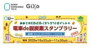 西日本旅客鉄道株式会社(以下、JR西日本)は、本事業に参画し、株式会社ギックスとの協業で、お客様一人あたりのCO2 排出が少なく環境にやさしい鉄道のご利用で WESTER ポイントが付与されるデジタルスタンプラリー『おおさかCO2CO2(コツコツ)ポイント+ 電車de脱炭素スタンプラリー 』を、JR西日本の移動生活ナビアプリ 「WESTER」で 2025年10月20日(月)から実施します。 ぜひこの機会に、環境にやさしく、おトクにおでかけください。 なお、本取り組みは株式会社ギックスが提供する行動データで顧客を理解する マーケティングツール「Mygru(マイグル)」を活用しています。