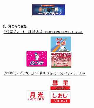 JR西日本グループ Release もっとつながる。未来が動き出す 2025年10月 8日 西日本旅客鉄道株式会社 \字幕プレート・サボ・蓄光懐中時計が抽選で当たる!/ WESTER鉄道広場デジタルスタンプラリー「第2弾」を開催中! 西日本旅客鉄道株式会社(以下、JR 西日本)が提供する移動生活ナビアプリ「WESTER」で「WESTER鉄道広場デジタルスタンプラリー2025」の第2弾企画を開催中です。第2弾企画では、新たな賞品をご用意したほか、車両所公開・鉄道のイベントも対象スタンプとして追加し、鉄道の魅力がさらに詰まったスタンプラリーになりました。ぜひご参加ください! 1.第2弾の企画 実施期間 :2026年3月31日(火)まで (第1弾 2025年6月9日〜2025年9月30日) 概 要 :鉄道にゆかりのあるスポットやイベントを巡ってデジタルスタンプを獲得すると、集めたスタンプ数に応じて抽選で賞品が当たります。 スポット数:鉄道にゆかりのあるスポット(鉄道の博物館など)12ケ所 鉄道イベント(車両所公開など)9ヶ所 ※2025年10月7日時点 2.第2弾の賞品 @字幕プレート 計13名様(3種×各4名様+3枚セット1名様) NEW! 既に引退した列車の字幕を「横200mm×縦150mm」サイズのアクリルプレートで再現します。プレート立てもセットのため、お部屋に飾ってお楽しみいただけます。 ・485系 スーパー雷鳥:関西〜北陸間の特急列車 ・485系 シュプール :京阪神〜信州間の臨時列車 ・381系 まほろば :2010年の「奈良デスティネーションキャンペーン」に合わせて運行した特急列車 Aサボ(レプリカ)計13名様(3種×各4名様+3枚セット1名様) NEW! 既に引退した列車のサボ(列車種別札)を、実物と同じ「横240mm×縦140mm」サイズで再現します。 ・彗 星:新大阪〜南宮崎間 等の寝台特急列車 ・月 光:新大阪〜博多間 等の寝台特急列車 ・しおじ:新大阪〜下関間 等の特急列車 B蓄光懐中時計 計2名様 NEW! JR西日本浜田鉄道部の運転士が実際に使用していた懐中時計です。裏面に「WEST 平成27年 NO.L1006」、「WEST 平成27年 NO.L1020」と刻まれている2種類をご用意します。 CWESTERポイント(基本) 計200名様 スタンプ獲得数に応じてWESTERポイント(基本)を抽選でプレゼントします。 D博物館の施設オリジナル商品 計1,120名様 一部の鉄道の博物館では、スタンプ獲得で施設オリジナル商品が抽選で当たります。 (当選者数は、施設により異なります) 3.第2弾のスポット @鉄道イベント(車両所公開など) NEW! 各イベントの詳細はURLからご確認ください。 ┌──────┬───────────┬───────┬──┬───┬──┐ │ 開催日 │車両所公開・イベント名│ 場所 │入場│申込者│詳細│ │ │ │ │ 料│ 限定│ │ ├──────┼───────────┼───────┼──┼───┼──┤ │10月11日(土)│SLフェア-2025- │下関総合車両所│無料│ │URL │ │ │ │ 新山口支所│※1 │ │ │ ├──────┼───────────┴─┐─────┼──┼───┼──┤ │10月11日(土)│鉄道の日 三次鉄道イベント│三次駅 │無料│ │URL │ ├──────┼───────────┬─┴─────┼──┼───┼──┤ │10月12日(日)│新幹線ふれあいデー │博多総合車両所│有料│○ ※2│URL │ ├──────┼───────────┼───────┼──┼───┼──┤ │10月13日(月祝)第6回 鉄道フェスティバル │ │ │ │ │ │ inとくやま│徳山駅 │無料│ │URL │ ├──────┼───────────┼───────┼──┼───┼──┤ │10月13日(月祝) 和歌山駅フェスタ │和歌山駅 │無料│ │URL │ ├──────┼───────────┼───────┼──┼───┼──┤ │10月18日(土)│鉄道ふれあいフェスタ │下関総合車両所│無料│ │URL │ │ │ 2025│ │ │ │ │ ├──────┼───────────┼───────┼──┼───┼──┤ │10月18日(土)│「WEST EXPRESS 銀河」 │新宮駅 │無料│○ ※3│URL │ │ │ 車両見学会 │ │ │ │ │ ├──────┼───────────┼───────┼──┼───┼──┤ │11月 1日(土)│白山総合車両所一般公開│白山総合車両所│無料│○ ※3│URL │ ├──────┼───────────┼───────┼──┼───┼──┤ │11月23日(日)│山陽新幹線ふれあいデー│博多総合車両所│無料│○ ※3│URL │ │ │ in 岡山 2025│ 岡山支所│ │ │ │ └──────┴───────────┴───────┴──┴───┴──┘ ※1 一部有料コンテンツがあります。体験には、1人1枚フリーパスチケット(\1,000)が必要です。 ※2 前日までに入場券をご購入(先着順)された方のみご来場いただけます。当日発売は行いません。 ※3 既に応募は終了しております。ご予約がないお客様はご参加いただけません。予めご了承ください。 2025年10月7日時点の情報です。ご来場の際には、必ず最新情報をご確認ください。 A鉄道にゆかりのあるスポット(鉄道の博物館など) WESTERアプリ「おトクにG