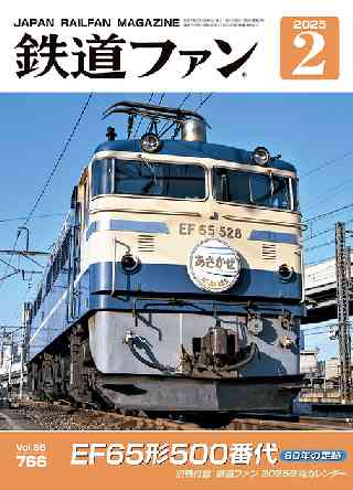 鉄道ファン 2025年2月号 Vol.65−766 特別定価1400円[本体1273円+税10%] 特集:EF65形500番代 60年の足跡 /関 崇博…………………………………………………………………………8 EF65形500番代は,1965(昭和40)年に登場した直流電気機関車で,寝台特急用のEF65P形(P:Passenger|旅客の意)と高速貨物列車用のEF65F形(F:Freight|貨物の意)が製造されたことは,多くの鉄道ファンの皆さんならすでにご承知のことと思われる.本稿執筆中の現在は,東日本旅客鉄道(以下JR東日本)に所属するEF65 501号機が唯一の車籍を有するものとなったなか,当局からファイナル運転の報道があり,いよいよ引退が迫ろうとしている. EF65 501号機を含むEF65形500番代については,趣味誌などに多くの記録が残されており,それらを踏まえてWEB上でも各種情報が発表されているが,本稿では,EF65形500番代の60年にわたる歴史を今一度,懐かしい写真を交えて概観してみたい. EF65P ブルトレ時代/伊藤久巳…………………………………………32 EF65形500番代の記憶と記録/斉宮則仁………………………………38 尾久車両センター EF65 1115 EF81 80公開/編集部…………………………44 CAR INFO…………………………………………………………………48 疾風激走/伊藤久巳………………………………………………………………52 東海道新幹線迂回ルート 〜東京−名古屋−大阪間を行く〜/山本直弘………………………………54 吸収合併で消える準大手私鉄 新京成電鉄と泉北高速鉄道/伊原 薫………………………………………60 シリーズ知見乗写 今もっとも輝いているベテラン車両たち14 JR東日本 E233系2000番代/結解 学・渡部史絵……………68 大手私鉄の形式・車号の付け方 2025 第1回 東武鉄道・京成電鉄/楠居利彦……………………………………74 開業60周年を迎えた今,振り返る 地下鉄東西線を彩った車両たち/柴田東吾…………………………………80 FP−Azusa Presents 鉄道・車両メカ探訪 第3回 ひこぼしライン3種のバス EV,FCVとディーゼルの競演/梓 岳志………………………………86 プレイバック・展望館 東武鉄道 東上線−1/久保 敏……………………………………………90 路面電車 40年間の軌跡を訪ねて/寺田裕一………………………………96 世界最速のジャカルタ〜バンドン間高速鉄道 /秋山芳弘・三浦一幹………………………………………………………100 鉄道ファンフォトサロン 富山地方鉄道 駅めぐり/鈴木正敏………………………………………104 鉄道にっぽん! メモリアル キハ85 特急南紀編………………………………………110 REPORT……………………………………………………………………112 POST…………………………………………………………………………116 出来事……………………………………………………………………………130 車内放送…………………………………………………………………………132 カレチ/JR東日本 車両のうごき(10月分)…………………………136 ●2024年度上半期 JR旅客会社 車両のデータバンク……………142 ●形式図:福岡市交通局4000系 4400(M4)…………………146 ■折込カラー:EF65 506号機“さくら”/ EF65 501号機 ■別冊付録:鉄道ファン2025 車両カレンダー ■表 紙/今は無き東京機関区で“あさかぜ”けん引に備えて待機する EF65 528号機. 写真:野口正行 ■目 次/写真:編集部 |