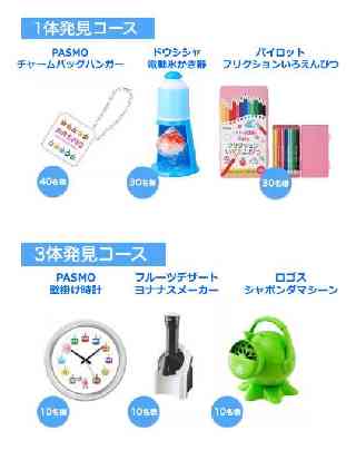 <キャンペーン概要A> 第1弾、第2弾、第3弾を通じて、全てのPASMOのミニロボットを見つけると、 豪華な賞品が当たる「10体達成コース」にご応募いただけます! キャンペーンは、今後第2弾、第3弾を実施する予定です。全3回を通じて全10体のPASMOのミニロボットを見つけると、「PASMO10周年ピンバッジコレクション」などの豪華賞品が当たる、「10体達成コース」にご応募いただけます! ※10体達成コースをお選びの方は、第1弾から第2弾、第3弾と続けて参加する必要があり、各回ごとに毎回ご応募いただきます。 ※本コースをお選びの方は、第2弾や第3弾からなどの途中参加はできません。 ※詳しくは、特設サイト(http://www.pasmo10.jp)をご確認ください。 |