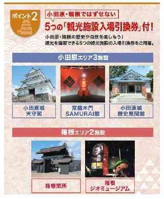 ポイント2.観光施設への入場引換券 ※添付画像参照 ポイント3.「箱根フリーパス」2日間 ※添付画像参照 ※画像はすべてイメージです。 |