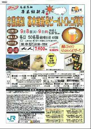 「志国高知 幕末維新号」運転再開を記念して、2日間限定で車内でビールなどが飲み放題のツアーを発売します。