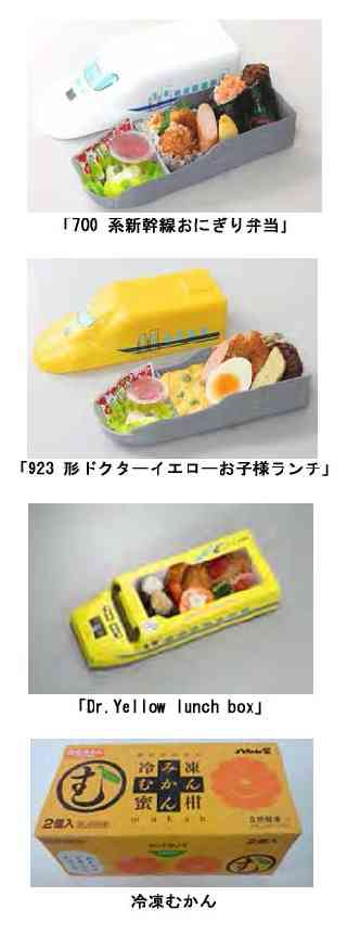 [別紙3] ミュージアムショップ、デリカステーションにおけるフェア開催について ミュージアムショップ 鉄道グッズでおでかけフェア! 鉄道グッズでおでかけしてみませんか!雨の日も、暑い日でも何かと活躍してくれる商品を取りそろえてお待ちしています。 期間:2019年6月24日(月)まで @トレインフェイスキッズ傘45cm …2,160円(税込) Aトレインフェイスキッズポンチョ …3,240円(税込) B新幹線ドクターイエローせんぷうき… 864円(税込) C新幹線N700系せんぷうき … 864円(税込) 《予告》 ミュージアムショップでは、プラレール新商品『レールも!車両も!情景も!60周年ベストセレクションセット』を7月3日(水)に先行販売いたします。 詳細は、ミュージアムショップツイッターでお知らせいたします。 (C) TOMY 「プラレール」は株式会社タカラトミーの登録商標です。 デリカステーション 新幹線型容器のお弁当の販売! 期間:2019年7月20日(土)〜9月1日(日) 食べ終わった後の容器をお部屋に飾れるとご好評をいただいている新幹線型容器のお弁当を、夏休み期間も販売します。ぜひお買い求めください! 「700系新幹線おにぎり弁当」 1,280円(税込) 「923形ドクターイエローお子様ランチ」 1,280円(税込) 「Dr.Yellow lunch box」 1,000円(税込) (※こちらの商品は通年販売です) 冷凍むかん(2個入)の販売! 期間:2019年6月1日(土)〜9月1日(日) 価格:324円(税込) 外皮をむかずに食べられる冷凍みかん、その名も「冷凍むかん」。冷たいスイーツは暑い日のデザートにぴったりです! 各フェアの開催期間など詳しくは5月下旬より「リニア・鉄道館」のホームページでご案内します。 (https://museum.jr-central.co.jp) ※商品内容・パッケージ・価格は、一部変更する場合もございます。※写真はイメージです。 ※売切れの場合はご容赦ください。 |