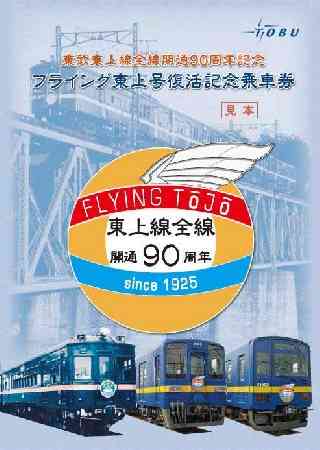 TOBU NEWS 2016年1月19日 「フライング東上号」リバイバルカラー車両運行開始記念! 2月1日(月)より 「フライング東上号 復活記念乗車券」を発売します! 東武鉄道株式会社 東武鉄道(本社:東京都墨田区)では、2016年2月1日(月)より、「フライング東上号復活記念乗車券」を東武東上線主要駅および東武グループツーリストプラザにて発売します。 この記念乗車券は、昨年11月28日より「フライング東上号」リバイバルカラー車両2編成が運行を開始したことを記念するもので、1セット1,000円(税込)を2,000セット限定で発売します。乗車券は昔懐かしい硬券仕様で、池袋駅・ふじみ野駅・小川町駅・寄居駅からの片道乗車券4枚が1セットとなっており、台紙には約60年前に撮影された当時の貴重な写真や、このたびのリバイバルカラー車両2編成の雄姿などをデザインしています。 東武東上線全線開通90周年記念として現在実施中である往年の看板列車「フライング東上号」リバイバルカラー車両の運行は、運行初日に同車両を用いた記念ツアーを実施、ほぼ満席のご参加をいただくなど、鉄道ファンのみならず沿線のお客さまからも大変ご好評をいただいております。 この機会に記念乗車券をお買い求めいただくとともに、話題のリバイバルカラー車両へぜひご乗車ください。 概要は別紙のとおりです。 以上 |