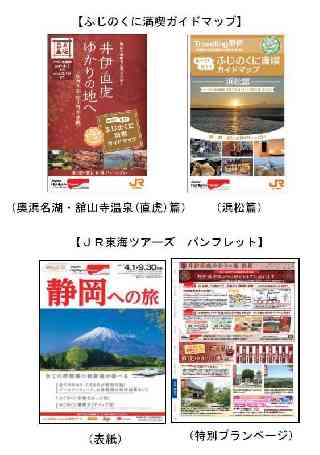 <商品・企画展開> (1)「食べて!見て!ふじのくに満喫ガイドマップ」 ・「三島篇」「富士・富士宮篇」「静岡市街篇」「掛川篇」「浜松篇」と「奥浜名湖・舘山寺温泉(直虎)篇」の6種類をご用意しています。 ・直虎と戦国の歴史人ゆかりの地をはじめ、地元グルメや温泉など観光情報が満載の、まち歩きに便利なガイドマップです。 ・エリア内の指定の飲食店等で総額750円〜1,000円相当分の特産品等と引き換えられる「まち歩きクーポン」がついています。 (2)「ふじのくに家康公きっぷ」 ・静岡県の「東部」「中部」「西部」のエリアごとに3種類。 ・各エリアの指定のJR・私鉄・バス等の交通機関の普通車自由席、一般席が2日間乗り放題になります。 ・1エリアにつき1,000円(こども500円)で他のエリアのきっぷも追加でご購入いただけます。(駅窓口では販売しておりません。旅行商品とセットでご購入ください。) (3)ガイドマップとフリーきっぷがセットになったお得な旅行商品を発売 〔ジェイアール東海ツアーズの商品一例〕 @「井伊直虎ゆかりの地 浜松」特別商品 ■商品概要:「ふじのくに満喫ガイドマップ(※)」と「ふじのくに家康公きっぷ (西部版)」がセットになったフリープラン型旅行商品です。 ※宿泊プラン:「浜松篇」と「奥浜名湖・舘山寺温泉(直虎)篇」の2冊付 ※日帰りプラン:「浜松篇」または「奥浜名湖・舘山寺温泉(直虎)篇」の どちらか1冊付 ■設定日 :平成29年9月30日(土)帰着まで ■発売日 :発売中 ■設定泊数:1泊・日帰り ■出発地区:首都圏・名古屋地区・関西地区 ■旅行代金:おとなおひとり様 [1泊] 東京・品川駅発 :20,200〜28,700円 名古屋駅発 :16,400〜24,900円 新大阪駅発 :21,000〜29,500円 ※往復新幹線普通車指定席利用 ※舘山寺温泉・ホテル鞠水亭 東館和室宿泊 (4・5名様1室・2食付)の場合 [日帰り] 東京・品川駅発 :11,800円 名古屋駅発 : 7,500円 新大阪駅発 :12,500円 ※往復新幹線普通車指定席利用 ■申込期限:出発日3日前まで(一部販売店を除く) ※上記プラン以外にも、出発日前日までお申込みいただけるプランもございます。 A「静岡への旅」商品 ■商品概要:「ふじのくに満喫ガイドマップ」と「ふじのくに家康公きっぷ」がセットになったフリープラン型旅行商品です。 ※「ふじのくに満喫ガイドマップ」は「ふじのくに家康公きっぷ」のエリアに応じて、ガイドマップを1冊お選びいただけます。 ■設定日 :平成29年9月30日(土)帰着まで ■発売日 :発売中 ■設定泊数:1泊 ■出発地区:首都圏・名古屋地区・関西地区 ■旅行代金:おとなおひとり様 [1泊] 東京・品川駅発 :17,000〜20,900円 名古屋駅発 :17,400〜21,300円 新大阪駅発 :22,600〜26,500円 ※往復新幹線普通車指定席利用 ※ホテルアソシア静岡 モデレートツイン (2・3名様1室・食事なし)の場合 ■申込期限:出発日前日まで(一部販売店を除く) ※上記の他、下記旅行会社においても旅行商品を発売しています。 JTB 日本旅行 近畿日本ツーリスト 東武トップツアーズ 名鉄観光 詳しくは「Japan Highlights Travel」ホームページ(http://japan-highlightstravel.com/)をご確認ください。 |