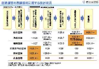 国土交通省 PressRelease MinistryofLand,Infrastructure,TransportandTourism 平成29年6月30日 航空局航空ネットワーク企画課 熊本空港の運営委託に係る民間投資意向調査の開始 〜熊本地震からの復興の加速化に向けて〜 国土交通省では、震災からの創造的復興のシンボルとして、熊本空港の運営の民間委託に向けた手続きを進め、熊本空港の活性化や震災からの復興の加速化を図ります。 今般、熊本空港の運営民間委託に向けた具体的な手続きの第一歩として、現時点における国の制度設計案(基本スキーム案)を示し、幅広く民間事業者の意見を募集する民間投資意向調査(マーケットサウンディング)を実施します。 1.意見を募集する「基本スキーム案」の概要 ・事業期間:48年間 ※(不可抗力等による延長含め最長58年間) ※運営権者による新ターミナルビル建設までの期間(3年)および当該ビルの耐用年数(45年)を考慮して設定 ・事業方式: <滑走路等とターミナルビルを一体運営> 国は、公募により運営権者を選定 運営権者は、滑走路等の運営とターミナルビル等の運営を一体的に実施 国は、公共施設等運営権を設定し、運営権者より運営権対価を収受 <新たなターミナルビルの建設> 運営権者は、既存の国内線ターミナルビルを取り壊し、国内線・国際線が一体となった新ターミナルビルを整備(平成34年度中予定) 2.今後のスケジュール(予定) ・平成29年8月25日 意見募集期限 ・平成30年1月頃 実施方針の策定・公表 ・平成30年3月頃 募集要項の策定・公表 ・平成31年3月頃 優先交渉権者の選定 ・平成32年4月頃 空港運営事業開始 (航空局ホームページURL)※こちらに基本スキーム(案)が掲載されています http://www.mlit.go.jp/koku/ 熊本空港の概要 ★現状 種 別:国管理空港 設置管理者:国土交通大臣 場 所:熊本県菊池郡菊陽町 滑 走 路:3,000m 旅客実績 :(国内)316万人 (国際)7万人 (平成27年度実績値) 貨物取扱量:(国内)16,564トン (平成27年度実績値) 主要路線 : (国内)38往復/日 東京(18)、成田(2)、中部(3)、名古屋(3)、大阪(10)、那覇(1)、天草(1) (国際) 7往復/週 高雄(3)、ソウル(4)、運休中〔香港〕 ★沿革 昭和35年 旧熊本空港供用開始(滑走路1,200m) 昭和46年 旧熊本空港供用廃止 新熊本空港供用開始(滑走路2,500m)、ターミナルビル供用開始 昭和48年 熊本空港へ名称変更 昭和55年 滑走路延長(滑走路3,000m) 昭和58年 国際線ターミナルビル供用開始 昭和63年 新貨物ビル供用開始 平成 7年 ILS CAT-V供用開始 ★平成29年度予算 事業費:15.39億円 ターミナル地域の再建(国内線別棟ビル含む)、エプロン拡張、用地造成等 |