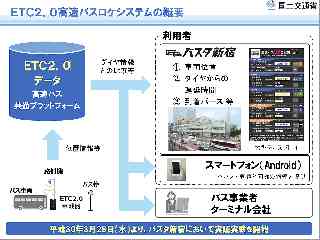 国土交通省 PressRelease MinistryofLand,Infrastructure,TransportandTourism 平成30年3月27日 道路局企画課 ETC2.0高速バスロケシステム実証実験を開始します 〜バスタ新宿で高速バスの運行情報をリアルタイムに提供〜 ETC2.0を共通プラットフォームとする、新たな高速バスロケーションシステムの実証実験を「バスタ新宿」で3月28日(水)より開始し、利用者への情報提供等の充実に取り組んでまいります。 現在、高速バスは、バスロケーションシステムの導入がほとんど進んでいないため、利用者から情報提供に関する不満やバス事業者の非効率な運行管理が生じている状況にあります。 このため、車両の位置や速度等のデータの捕捉が可能なETC2.0の機能を活用し、利用者等にリアルタイムで情報提供を行う、各バス事業者共通のプラットフォームである「ETC2.0高速バスロケーションシステム」を開発※しました。 ※ 地域道路経済戦略研究会関東地方研究会と連携 まずは、「バスタ新宿」において、12社の協力の下、5路線で、以下の通り実証実験を開始します。 引き続き、実証実験に参加する会社・路線を拡充し、バスタ新宿の更なる利便性の向上に努めるとともに、他のターミナル等への展開等についても検討してまいります。 ■実証実験開始日 平成30年3月28日(水)より ■情報提供方法 待合スペース(3F,4F)に設置する大型ディスプレイとスマートフォン用(Android)アプリで高速バスの車両位置やダイヤからの遅延時間、到着バース等を提供 実証実験の対象路線、参加バス事業者 ■対象路線(5路線) ・富士五湖線 ・甲府線 ・松本線 ・袖ヶ浦・木更津線 ・常陸大宮・常陸太田線 ⇒順次、路線拡大予定 ■参加バス事業者(12社) アルピコ交通(株)、アルピコ交通東京(株)、茨城交通(株)、小田急シティバス(株)、京王電鉄バス(株)、京王バス東(株)、京王バス南(株)、小湊鐵道(株)、富士急行(株)、(株)フジエクスプレス、富士急行山梨バス(株)、山梨交通(株) ⇒バスタ新宿に乗り入れている117社全社に順次拡大予定 (参考)地域道路経済戦略研究会 関東地方研究会の概要 研究会の設立趣旨 (地域道路経済戦略研究会(第1回資料)) 地域経済・社会における課題を柔軟かつ強力に解決し、成長を支えていくためには、飛躍的な進化を遂げる情報通信技術や多様なビッグデータを最大限に利活用し、道路を賢く使う、世界のトップランナーとしての新たな道路政策に挑戦・実行していく必要がある。 これを踏まえ、本研究会は、有識者より地域の道路を活かした政策提言を頂くとともに、道路空間の有効活用による地域経済活性化戦略と、これを実現するための社会実験・実装について研究を行うことを目的に設置するものである。 会議体の構成 地域道路経済戦略研究会(国土交通省) ├地域道路経済戦略研究会 北海道地方研究会 ├地域道路経済戦略研究会 東北地方研究会 ├地域道路経済戦略研究会 関東地方研究会 ├地域道路経済戦略研究会 中部地方研究会 ├地域道路経済戦略研究会 近畿地方研究会 ├地域道路経済戦略研究会 北陸地方研究会 ├地域道路経済戦略研究会 中国地方研究会 ├地域道路経済戦略研究会 四国地方研究会 ├地域道路経済戦略研究会 九州地方研究会 └地域道路経済戦略研究会 沖縄地方研究会 関東地方研究会の委員構成 ※平成30年3月現在 ┌─────┬─────┬───────────────────┐ │ │ 氏 名 │ 所属・役職 │ │学識経験者│福田 大輔│東京工業大学大学院理工学研究科 准教授│ │ │日下部貴彦│東京大学空間情報科学研究センター 講師│ │ │蜿タ 秀樹│東京理科大学理工学部土木工学科 講師 │ ├─────┼─────┴───────────────────┤ │関東地方 │道路部 道路計画第一課 課長 │ │ 整備局│道路部 道路計画第二課 課長 │ │ │道路部 計画調整課 課長 │ │ │道路部 交通対策課 課長 │ └─────┴─────────────────────────┘ 関東地方研究会の研究 関東地域の特性を踏まえ、ビッグデータを活用した研究を実施。 ・ETC2.0プローブデータを活用した公共交通支援の可能性 ↓ ・バスタ新宿で高速バスの運行情報リアルタイムに提供 |