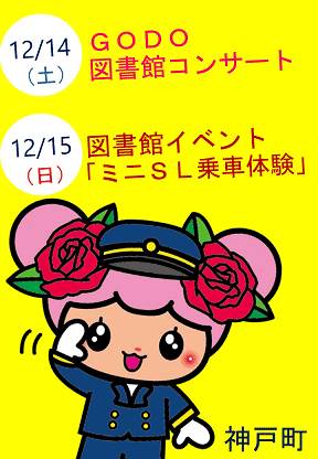 神戸町 養老鉄道株式会社 GODO図書館コンサートおよび図書館イベントを 記念するヘッドマークを掲出します! 神戸町では、12月14日(土)に「GODO図書館コンサート」を、12月15日(日)に「図書館イベント『ミニSL乗車体験』」を開催します。これを記念するヘッドマークを12月12日(木)から12月15日(日)までの間、養老鉄道の協力を得て、D04編成(C#504−604)に掲出します。 詳細は以下のとおりです。 「GODO図書館コンサート」および「図書館イベント」記念ヘッドマークの掲出 養老線全線開通100周年記念企画第93弾 1.掲出期間 2019年12月12日(木)〜12月15日(日) 2.掲出編成 D04編成(C#504−604) 3.デザイン 下記のとおり。神戸町の公式マスコットキャラクター「ばら菜」をデザインしています。 4.GODO図書館コンサートについて (1)開催日時:2019年12月14日(土)15:00〜17:00 (2)場 所:神戸町立図書館(養老鉄道北神戸駅下車すぐ) (3)内 容: GODO図書館コンサートは、住民と町の職員が協働で町づくりを進める「神チャレンジプロジェクト」の一環で実施する事業です。当日は楽器の演奏やコーラスグループによる歌唱を楽しんで頂けます。 5.図書館イベント「ミニSL乗車体験」について (1)開催日時:2019年12月15日(日)10:30〜14:00 (2)場 所:神戸町立図書館(養老鉄道北神戸駅下車すぐ) (3)そ の 他:参加費は無料ですが、幼児の方は保護者同伴でご参加ください。 |