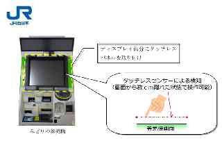 2021 年7月2日 新大阪駅の「みどりの券売機」で タッチレスパネルの実証実験を行います! 新型コロナウィルスの感染拡大に伴い、サービスの「非接触化」に対する社会的関心が高まる中、より安心して鉄道をご利用いただくための取り組みとして、「みどりの券売機」の非接触操作を可能とするタッチレスパネルの実証実験を新大阪駅で実施します。 1.実施場所 新大阪駅東口の「みどりの券売機」(1台) 2.実施時期 2021年7月2日(金)営業開始から ※実証実験期間は約2ヶ月間の予定です。 3.実施概要 従来の「みどりの券売機」のディスプレイ部分にタッチレスパネルを取り付けることにより、画面に直接触れることなく、券売機操作・きっぷの購入ができるようになります。 ※本実証実験は「鉄道情報システム株式会社」の協力のもと実施いたします。 4.その他 ・従来とおり画面に直接触れての操作も可能です。 ・操作手順や購入できるきっぷの種類は、従来の「みどりの券売機」と同様です。 |