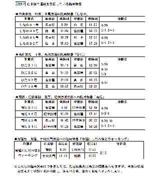 東海旅客鉄道株式会社 “春”の臨時列車の運転計画について JR東海では、春の期間中(2022年3月1日から6月30日までの122日間)に、下記の通り臨時列車の運転を計画しております。現時点で計画されている列車の詳しい運転日や運転時刻につきましては、時刻表にてお知らせします。 なお、新型コロナウイルスの影響等により、今回お知らせしている臨時列車の指定席発売は、当面の間、見合わせます。発売を見合わせる臨時列車につきましては、今後の状況を踏まえて運転するか判断し、決まり次第、改めてお知らせいたします。 定期列車については、新幹線の一部の列車を除いて通常通り指定席発売を行います。 <新幹線> ◆春の期間では、42,296本(一日平均:347本)の新幹線を計画しています。 ・お客様に安心してご利用いただけるよう、十分な輸送力を確保すべく、余裕をもった 列車本数とします。 ・GW期間(4月28日〜5月8日)には、一日平均で386本の新幹線を運転します。 ◆「のぞみ12本ダイヤ」により、ご利用の集中する時間帯に多くのお席をご用意します。 ・GW期間や連休、休前日などのお客様のご利用が集中する時間帯を中心に、1時間あたり最大12本の「のぞみ」号を計画しています。 <計画本数(全列車)> ┌───────────────┬───────────────┐ │ 春の期間 │ GW期間 │ │ [3月1日〜6月30日] │ [4月28日〜5月8日] │ ├───────────────┼───────────────┤ │42,296本(374本/日) │ 4,248本(386本/日) │ └───────────────┴───────────────┘ ( )内は期間中の一日平均 ※通常通り指定席発売を行う東海道新幹線の定期列車については、別紙1をご参照ください。 ◆その他 ・N700S車両で運転する列車の一部を、JR東海ホームページや時刻表で事前にお知らせします。具体的な列車や運転時刻は、別紙1をご参照ください。 ※3月12日(土)以降は、車椅子スペースを6席設置したN700S車両を充当します。 <在来線> ◆GW期間を中心に、臨時特急を計画しています。 ・お客様のご利用状況を踏まえて十分な輸送力を確保すべく、臨時特急を計画しています。なお、定期列車については、お客様のご利用にあわせて車両数を増やすことで、より多くの座席をご用意します。 〇中央線 ・塩尻、松本方面への臨時特急「しなの」を、GW期間に計20本計画しています。 〇高山線 ・下呂、高山方面への臨時特急「ひだ」を、GW期間などに計8本計画しています。 〇関西・紀勢線 ・熊野、紀伊勝浦方面への臨時特急「南紀」を、GW期間に計18本計画しています。 〇身延線 ・身延、市川大門方面への臨時特急「身延山しだれ桜とウォーキング」号を、3月19 日に計画しています。 ◆その他 ・臨時特急「しなの」「ひだ」「南紀」等の詳細は、別紙2をご参照ください。 ・御殿場方面への臨時特急「ふじさん」、修善寺方面への臨時特急「踊り子」につきましては、最新の時刻表ならびに小田急電鉄株式会社、東日本旅客鉄道株式会社のHPやニュースリリースをご参照ください。 ◆新型コロナウイルス感染症対策に関する取組み ・新型コロナウイルス感染症対策に関する当社の取組みについては、当社HPをご覧く ださい。(https://jr-central.co.jp/notice/detail/_pdf/000040501.pdf) ◆その他 ・「東海道新幹線のビジネス環境の整備について」(2021年8月26日)でお知らせした、東海道・山陽新幹線(16両編成)における喫煙ルームの設定を、2022年3月12日(土)より以下のとおり変更します。 【変更前】(普通車)3・7・15号車(グリーン車)10号車 【変更後】(普通車)3・15号車(グリーン車)10号車 以 上 |