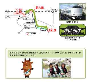 2023年 1月20日 西日本旅客鉄道株式会社 近 畿 統 括 本 部 臨時特急「まほろば」運転のお知らせ 2023年3月の大阪駅(うめきたエリア)開業にあわせて、大阪・新大阪と奈良を乗り換えなしで快適に結ぶ、臨時特急「まほろば」を土曜、日曜、祝日に運転します。これにあわせて、臨時特急「まほろば」のご利用に便利でおトクなチケットレス特急券や旅行商品を発売します。 魅力ある奈良エリアへの観光やおでかけに便利な臨時特急「まほろば」をぜひご利用ください。 1.列車の概要 ┌────┬──────────────┬───────────┬────┐ │列 車 名│ 運転時刻 │ 運転日 │ 記事 │ ├────┼──────────────┼───────────┼────┤ │ │ 大阪−→新大阪−→ 奈良 │3/25,26 │ │ │ │ 9:58発 10:04発 10:56着│4/1,2,8,9,15,16,22,23 │287系3両│ │まほろば├──────────────┤ │全車 │ │ │ 奈良−→新大阪−→ 大阪 │5/27,28 │ 指定席│ │ │17:41発 18:36着 18:43着│6/3,4,10,11 │ │ └────┴──────────────┴───────────┴────┘ ※新型コロナウイルス感染状況などにより、運転の取りやめや記載の内容が変更となる場合があります。おでかけ前に最新の状況をご確認ください。 2.奈良へのおでかけに便利なきっぷ・商品 臨時特急「まほろば」の運転にあわせて、JR西日本ネット予約「e5489」限定「まほろばチケットレス特急券(大阪〜奈良)」を発売します。 ・利用期間 2023年3月25日(土)〜6月11日(日) ・おねだん 大阪、新大阪〜奈良 860円 (おとな1名様、普通車指定席・片道利用※別途ご利用区間を含む乗車券が必要です) ※きっぷの発売・ご利用条件等の詳細は、「JRおでかけネット」でご確認ください。 また、奈良の魅力を一層お楽しみいただける旅行商品を旅行会社より発売予定です。 臨時特急「まほろば」や、奈良へのおでかけに便利な情報は、Webサイト(https://www.jr-odekake.net/railroad/mahoroba/)をご覧ください。 3.奈良市内の魅力的な観光スポットや体験 臨時特急「まほろば」運行期間中にお楽しみいただける奈良エリアの魅力的な観光スポットや体験についての情報は以下のホームページをご覧ください。 ・(一財)奈良県ビジターズビューローホームページ 奈良観光・旅行に[奈良体験.com]-体験型観光プログラム満載!(nara-experience.com) ・(公社)奈良市観光協会ホームページ 奈良市観光協会サイト(narashikanko.or.jp) 運行初日(3月25日)は奈良駅で「しかまろくん」や「NARA CITYコンシェルジュ」がお客様をお出迎えいたします! |