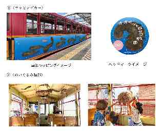 京都水族館の人気者である「オオサンショウウオ」のイラストでトロッコ列車をラッピングしたり、車内やトロッコ嵯峨駅構内に、「オオサンショウウオぬいぐるみ」の装飾を施すことで、いつもとは一味違ったトロッコ列車の旅を楽しんでいただければと思います。