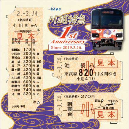 キャプション: △「川越特急1 周年記念乗車券」イメージ 台紙中面