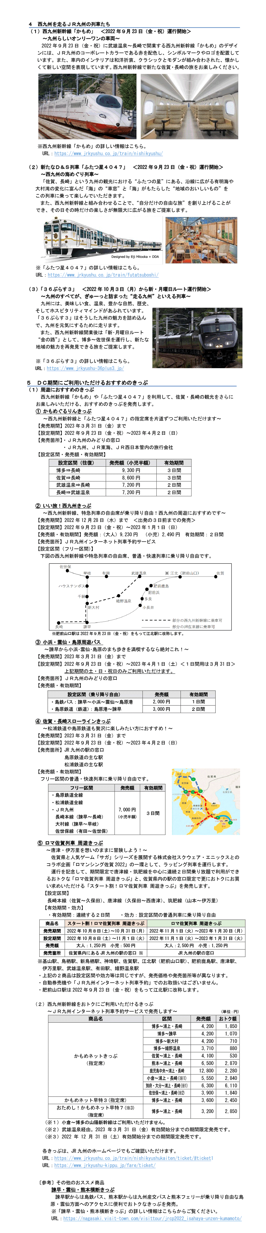 キャプション: 「西九州を走るJR九州の列車たち」と「DC期間にご利用いただけるおすすめのきっぷ」