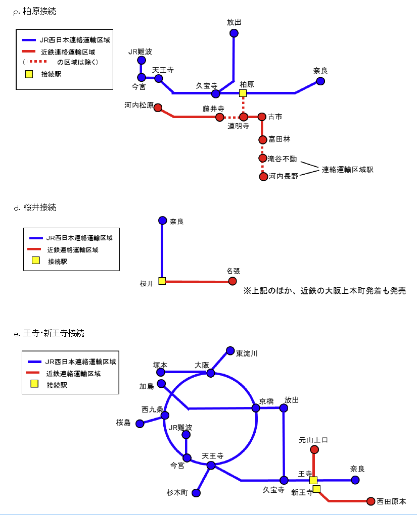 キャプション: c.柏原接続/d.桜井接続/e.王寺・新王子接続