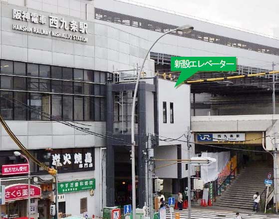 キャプション: 新設エレベーター(写真中央)