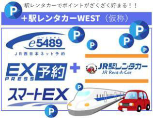 西 日 本 旅 客 鉄 道 株 式 会 社 JR西日本レンタカー&リース株式会社 「鉄道+駅レンタカー」 新サービス開始のお知らせ WESTERポイントがたまる、便利でおトクなサービス 西日本旅客鉄道株式会社(以下、「JR西日本」)とJR西日本レンタカー&リース株式会社(以下、「JR西日本レンタカー&リース」)は、新たなサービスとして、鉄道と駅レンタカーのセット利用によりWESTERポイントを還元するサービスを2026年初(予定)より開始いたします。 ぜひWESTER会員にご登録のうえ楽しみにお待ちください。 (1) 新サービスの概要 「e5489」または「EXサービス」(エクスプレス予約・スマートEX)にてJR西日本区間を含む新幹線・特急等のきっぷ(指定席特急券または指定席券)をご購入いただき、かつ、駅レンタカーをご利用された方を対象として、レンタカーご利用(基本料金)の10%割引に加え、ご利用額の一部相当分のWESTERポイントを還元いたします。 (2)商品名(仮称) ・「+駅レンタカーWEST」(読み:プラスえきレンタカーウエスト) (3)開始時期(予定) ・2026年初 (4)ご利用条件 ・サービスのご利用には、WESTER会員登録(無料)が必要です。 ・鉄道の予約と駅レンタカーの予約は、必ず同じWESTER IDで行っていただく必要があります。ただし、鉄道の予約は、外部ID利用サービス登録済みのEX会員IDによる予約も対象となります(外部ID利用サービスの詳細はこちらを参照ください)。 ※EXサービスにおけるLINEからEX会員、一部の法人会員、海外向けサービス会員およびe5489における法人会員の方はご利用いただけません。 【各サイトでのログイン方法】 e5489 ………………………………… WESTER ID/EX会員ID※1 エクスプレス予約…………………… WESTER ID (J-WESTカードエクスプレス会員) エクスプレス予約/スマート……… EX会員ID※1 (JR東海エクスプレス・カード会員・エクスプレス会員) + 駅レンタカー…………………… WESTER ID ※1:外部ID利用サービス登録済みのEX会員ID に限ります。 ・一部のポイント利用商品、周遊パス商品、乗車券のみをご利用の場合等は対象外となります。 ・対象となる駅レンタカーの営業所やWESTERポイントの還元率等サービスの詳細は、準備出来次第ホームページ等にてお知らせいたします。 JR西日本およびJR西日本レンタカー&リースでは、上記の他にも鉄道と駅レンタカーを組み合わせたおトクなプランをご提供してまいります。詳しくはこちらをご確認ください。 |