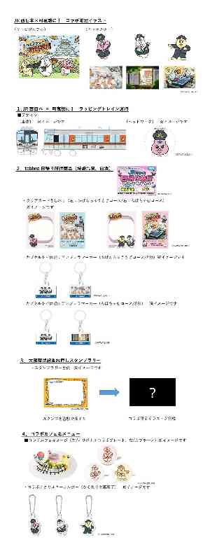 JR西日本グループ Release もっとつながる。未来が動き出す 2026年 1月14日 西日本旅客鉄道株式会社 JR西日本 × クリエイター「可哀想に!」 コラボキャンペーン開催決定 JR西日本は、「おぱんちゅうさぎ」「んぽちゃむ」「きみまろ」を手掛けるクリエイター「可哀想に!」とのコラボレーションキャンペーンを実施します。本企画では、特別な体験をお届けするとともに、 鉄道の新たな魅力を発信する多彩な取り組みを展開いたします。 JR西日本×可哀想に! コラボ限定イラスト 今回の企画のために、クリエイター「可哀想に!」さんが、特別に描きおろしたコラボ限定イラストを公開します。キャラクター達がお出かけする様子を表現したコラボ限定イラストで、ラッピング列車やカフェ装飾、ノベルティなどに使用されます。ファン必見の新しい世界観をお楽しみください。 【詳細はこちら】 https://www.jr-odekake.net/navi/kawaisouni/ 【企画内容】 1. JR西日本 × 可哀想に! ラッピングトレイン運行 大阪環状線、JRゆめ咲線を走行する323系車両にて、コラボ限定デザインのラッピングトレインを運行します。 ■運行期間:2026年1月30日(金)〜5月30日(土)(予定) ※車両運用の都合や運行状況により運転しない日があります。 ■対象車両:323系(8両・1編成) ■運転区間:大阪環状線、JRゆめ咲線 ■デザイン *伊藤注:添付画像をご覧下さい。 2.tabiwa日帰り旅行商品(城崎温泉、白浜) 「可哀想に!」のキャラクターたちとのお出かけを楽しめる日帰り旅行商品を販売します。城崎温泉にはおぱんちゅうさぎとお出かけ気分を味わえる「おぱんちゅうさぎコース」で2プラン、白浜には「んぽちゃむ」、「きみまろ」と一緒にお出かけ気分を味わえる「んぽちゃむコース」で2プランをそれぞれご用意しております。是非、お出かけしながら「可哀想に!」の世界観を満喫してください。 ■販売期間:2026年1月15日(木)〜3月27日(金)12:00(予定) ■設定期間:2026年1月19日(月)〜3月31日(火)(予定) ■コース概要: @おぱんちゅうさぎコース(関西発〜城崎温泉駅帰着) Aプラン:【ゆるーくタビする♪城崎温泉街歩き】 外湯利用券(1施設)、カフェチケット(1施設)、城崎文芸館入場券 ※城崎文芸館は水曜日発には含まれておりません。 Bプラン:【城崎マリンワールドで遊ぼう!!】 城崎マリンワールド入場券、アジ釣り竿代金(アジ釣り体験ができない場合は、現地レストラン・カフェの700円分の金券として利用可能) Aんぽちゃむコース(関西発〜白浜駅帰着) Aプラン:【白浜のスポット巡り&とれとれ市場で海鮮丼を満喫♪】 明光バス1日乗車券、とれとれ市場「海鮮丼」 Bプラン:【トリックアートに挑戦!エネルギーランドを楽しもう♪】 白浜エネルギーランド入場券(温泉たまごづくり体験付) ※各コース除外日が設定されておりますので、あらかじめご了承ください。 ■日帰り旅行商品の特徴 @旅行商品購入者全員に、旅行前にオリジナルのクリアカードとしおりを送付しますので、 キャラクターたちと写真を撮影しながら旅行をお楽しみください。 ・クリアカード&しおり(左:おぱんちゅうさぎコース/右:んぽちゃむコース) A旅行商品購入者限定で、城崎温泉、および白浜に設置しているカプセルトイ体験にお一人様1回ずつ挑戦することができます。 △カプセルトイ設置箇所 【おぱんちゅうさぎコースAプランご購入の場合】 ・「UTSUROI TSUCHIYA ANNEX CAFE」体験時間:8:00〜16:30(除外日あり) ・「短編喫茶Un」体験時間:10:00〜17:00(除外日あり) 【おぱんちゅうさぎコースBプランご購入の場合】 ・「城崎マリンワールド」体験時間:9:30〜16:30(除外日あり) 【んぽちゃむコースAプラン、Bプランご購入の場合】 ・「白浜駅構内(紀伊半島観光情報ステーション)」体験時間:9:30〜18:00 ・カプセルトイ体験:アンブレラマーカー(おぱんちゅうさぎコース/2種) ・カプセルトイ体験:アンブレラマーカー(んぽちゃむコース/2種) B旅行商品の設定期間にて、おぱんちゅうさぎコース、んぽちゃむコースでそれぞれ一回ずつ旅行商品をご利用されたお申込み代表者様に、WESTERポイント3,000ポイント(期間・用途限定)をプレゼントします。さらにダブルチャンスとして、応募フォームよりご応募いただいた方の中から抽選でオリジナルトートバッグを5名様、オリジナルフェイスタオルを10名様にプレゼントします。 ※オリジナルトートバッグ、オリジナルフェイスタオルのイメージは後日webページにて公開 いたします。 ※ご旅行お申込み代表者様が対象です。 【詳細はこちら】 (Webページ公開及び発売日時 1月15日(木)11:00) https://www.nta.co.jp/jrodekakenet/train/student/kawaisouni/ 3.大阪環状線重ね押しスタンプラリー ラッピングトレインの運行に合わせ、大阪環状線の6駅を舞台にしたスタンプラリーを開催します。 スタンプの重ね押しで、キャラクター達のコラボ限定イラストが完成する特別仕様です。 ■実施期間:2026年1月31日(土)〜3月30日(月) ■対象駅 :大阪駅、大阪城公園駅、桃谷駅、天王寺駅、弁天町駅、野田駅の6駅 ■参加方法:@各駅に