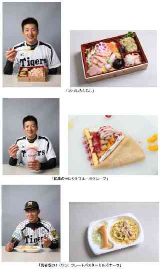 阪神甲子園球場 タイガース選手との新コラボメニューを販売 能見、鳥谷、マートン、西岡、上本、藤浪の6選手と10品を共同企画 阪神甲子園球場では、2014年シーズンホーム開幕戦の4月8日(火)からシーズン(クライマックスシリーズ、日本シリーズも含む)終了まで、阪神タイガース6選手との新コラボメニューを販売します。今回は「能見選手」、「鳥谷選手」、「マートン選手」、「西岡選手」、「上本選手」、「藤浪選手」とコラボし、全10品を共同企画しました。 これらは阪神甲子園球場でしか味わえないオリジナルメニューです。 新コラボメニューの詳細は以下のとおりです。 1 「あつしのちらし」 昨年まで販売していた能見選手コラボ弁当『熱志の海』をリニューアル。能見選手の出身地(豊岡)にちなみ、海鮮をふんだんに取り入れた海鮮ちらしをメインに、見た目も鮮やかな一品としました。 ・販売価格 1,300円(税込) ・販売場所 外周を含む各エリア弁当販売店、弁当販売ワゴン 2 「能見セレクトフルーツクレープ」 昨シーズンも販売した『能見セレクトフルーツジュース』で使用している、3種類のフルーツ(りんご・いちご・オレンジ)入りのクレープです。ジュースと同様にさっぱり、キレのある味に仕上がっています。 ・販売価格 600円(税込) ・販売場所 内野3F 「スイーツカフェ」 外野2F 「ココナッツガーデン」 3 「鳥谷敬の1(ワン)プレートパスタ〜カルボナーラ」 鳥谷選手の好物であるパスタ(カルボナーラ)にサラダとパンをセットし、ワンプレートランチに仕立てました。女性やお子さまにも食べやすいサイズで、パンは鳥谷選手の背番号“1”をかたどり、焼き上げています。 ・販売価格 950円(税込) ・販売場所 内野2F 「PASTA」 内野3F 「タイガースフードコート」 アルプス3F 「アルプス食堂」 外野2F 「ココナッツガーデン」 4 「鳥谷和風御膳」 鳥谷選手コラボ弁当の第2弾。女性をターゲットとした高級感のあるお弁当となっており、ご飯部分には鳥谷選手のユニフォームをモチーフにしたかまぼこを乗せています。 ・販売価格 1,300円(税込) ・販売場所 外周を含む各エリア弁当店、弁当販売ワゴン 5 「マートンカツサンド」 マートン選手の大好物である日本食をベースに‘照り焼きソース’を使用し、同選手本人からリクエストのあった‘マヨネーズ’をからめています。白い柔らかいパンとソース・トンカツの相性が良く、ふんわりサクサクとした食感が楽しめるカツサンドです。 ・販売価格 600円(税込) ・販売場所 内野3F 「タイガースフードコート」 外野2F 「ココナッツガーデン」 6 「西岡剛の塩野菜ラーメン」 女性でも食べやすいヘルシー塩ラーメン。あっさりとした塩ベースのスープに彩り鮮やかな野菜がたっぷりの一品。お肉はチャーシューではなく鶏肉を使用し、厚揚げには西岡選手の背番号“7”を印字しました。 ・販売価格 750円(税込) ・販売場所 内野3F 「タイガースフードコート」 外野3F 「浜風食堂」 7 「上本博紀のナイスプレート」 サンドイッチと様々なおかずを入れたプレート型のお弁当。野菜を多く取り入れ、色鮮やかに仕上げた上本選手一押しの女性向けお弁当です。デザートは、上本選手の好物であるチョコレートにちなみ、ペリー味のチョコレートロールにしました。 ・販売価格 1,100円(税込) ・販売場所 外周を含む各エリア弁当販売店、弁当販売ワゴン 8 「藤浪の鉄板和牛すきやき重」 藤浪選手の好物である牛肉をふんだんに盛り込んだすきやき重です。牛肉には和牛を使用しピッチング同様豪快に鉄板で焼き上げました。味・ボリュームともにハイクオリティーな一品です。 ・販売価格 1,200円(税込) ・販売場所 内野3F 「タイガースフードコート」 「藤浪の鉄板和牛すきやき重」 外野2F 「金本丼&藤浪丼」 外野3F 「藤浪の鉄板和牛すきやき重」 9 「藤浪直球(ストレート)弁当」 縦長のパッケージに、穴子の大きな天ぶらを豪快に盛りつけて、藤浪選手を表したダイナミックなお弁当です。おかずには、ぎょうざや肉じゃがといったご飯にぴったりの食材を並べました。 ・販売価格 1,300円(税込) ・販売場所 外周を含む各エリア弁当販売店、弁当販売ワゴン 10 「晋太郎のチョコベリーパフェ」 甘党の藤浪選手にピッタリの選手コラボパフェ。同選手も大好物というチョコレートをメインに相性の良いペリー系の食材を組み合わせています。 ・販売価格 650円(税込) ・販売場所 内野3F 「スイーツカフェ」 外野2F 「ココナッツガーデンl ■選手メニュー関連のお知らせ グリーンシート(上段)チケットにお好きな選手メニューまたは選手弁当1品との引換券が付いた、『プレイヤーズメニューチケット』を今年も好評発売中です! ■対象試合:阪神甲子園球場開催レギュラーシーズン公式戦試合 ■料金 :平日6,400円 土日祝・巨人戦6,600円 (グリーンシート上段席+選手メニュー引換券1枚) ■発売期間:発売中〜各試合当日の試合開始予定時刻まで ■発売方法:チケットぴあのインターネット(モバイ