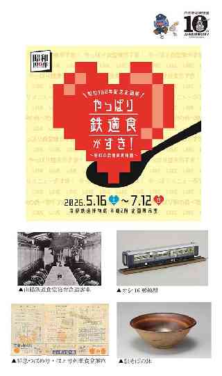 2026年 3月26日 京都鉄道博物館 昭和100年記念企画展 「やっぱり鉄道食がすき!〜昭和の鉄道の食物語〜」 食堂車は1899(明治32)年に初めて山陽鉄道が営業を開始し、官設鉄道では1901(明治34)年に東海道本線から始まりました。戦後は多くの列車に連結され、メニューが多種多様化し、多くの乗客が利用するようになりました。一方、駅構内では食堂車やそば、駅弁など使用者のニーズに合わせて発展しました。 この度、昭和100年記念企画展として、昭和に活躍した列車食堂を中心に鉄道と食に関するテーマで昭和の食文化をご紹介します。 開催期間 2026年5月16日(土)〜7月12日(日) 開催場所 本館2F 企画展示室 展示内容 1. やっぱり歴史がすき! 鉄道と食にまつわる歩み 鉄道と食の関係や昭和時代の食文化についての歩みをご紹介します。 【展示予定資料】写真、パンフレット、ヘッドマーク等 2.やっぱり食堂車がすき! 食堂車の発達とその種類 昭和時代を中心に様々な列車に連結された食堂車をご紹介します。 【展示予定資料】食堂車模型、写真、形式図、車内備品等 3.やっぱりメニューがすき! 昭和の多種多様な食堂車メニュー 特急、急行、準急、新幹線、各ニーズに合わせた豊富な食堂車メニューをご紹介します。 【展示予定資料】写真、メニュー、食品サンプル 4.やっぱり駅の食べ物がすき! 駅の食文化 食堂、喫茶店、駅そば、キオスク、駅弁などの駅構内の食についてご紹介します。 企画展図録も販売します♪ また、関連イベントも企画中!詳細は決まり次第、おしらせします! |